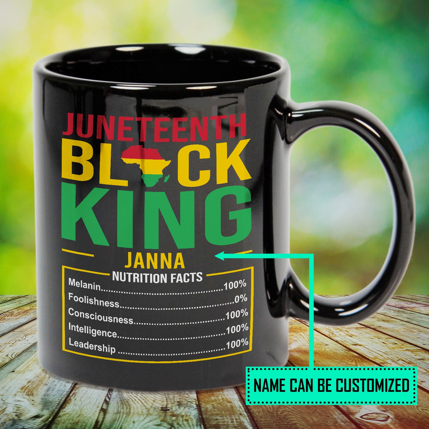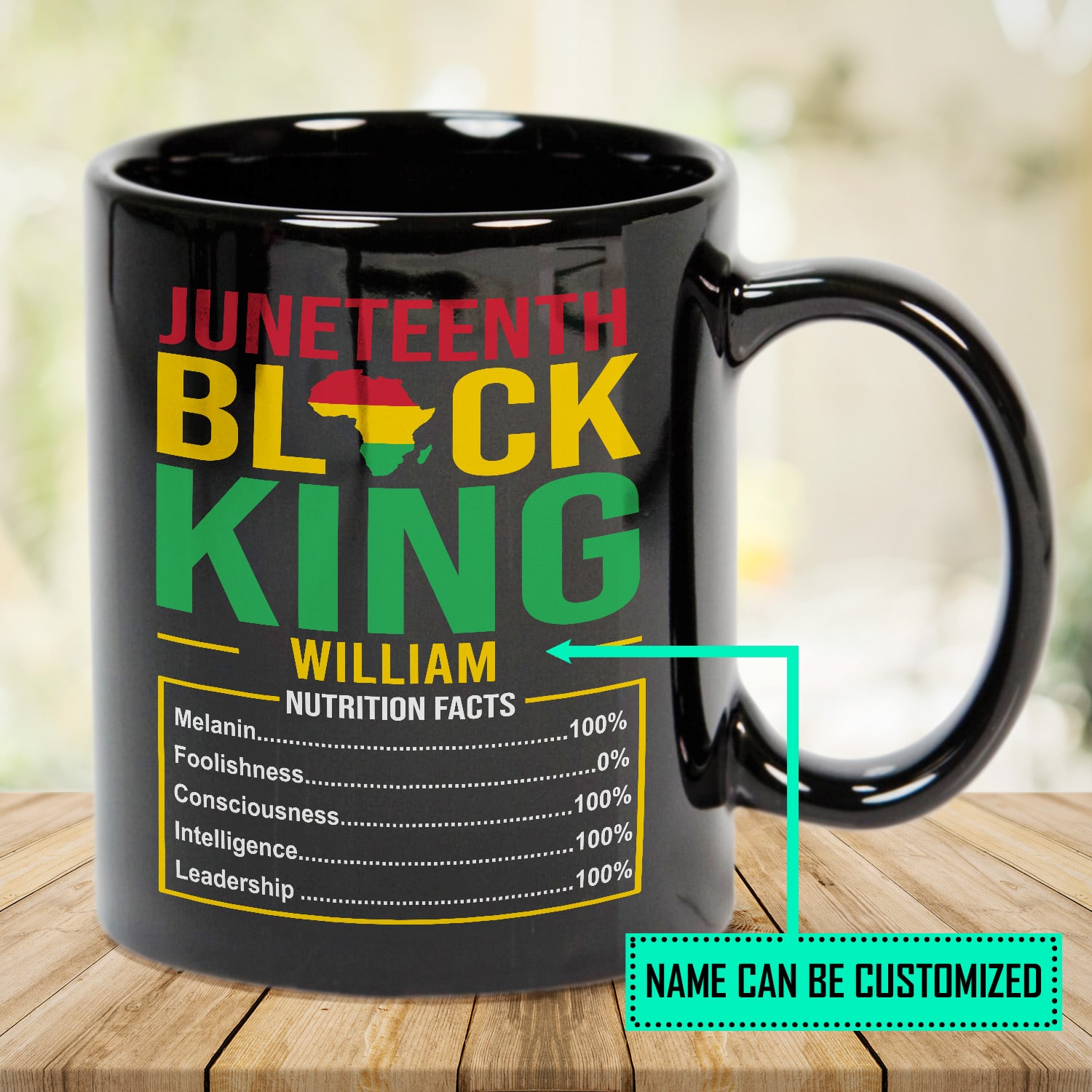 Let’s Shop Personalized Juneteenth Black King Nutritional Facts Ceramic Coffee Mug!