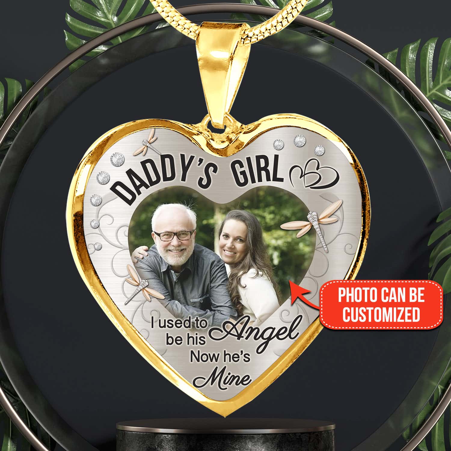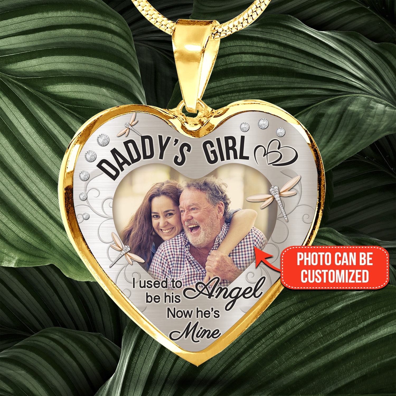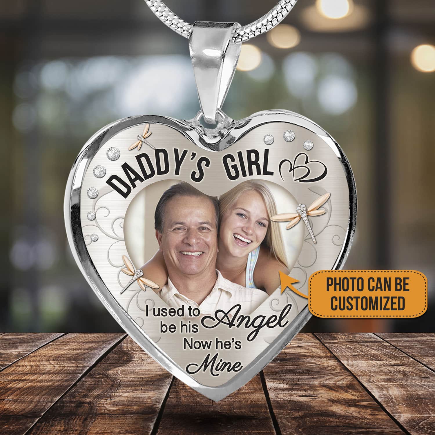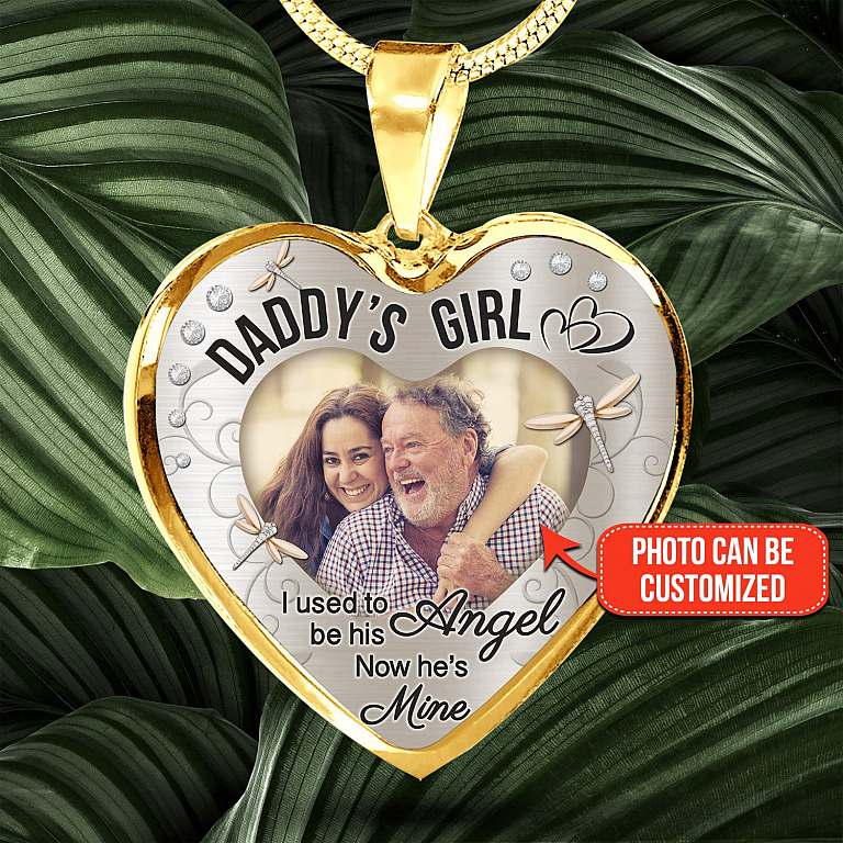 Let’s Shop Personalized Photo Daddy’s Girl I Used to Be His Angel Now He’s Mine Heart Pendant Necklace – Bangle!