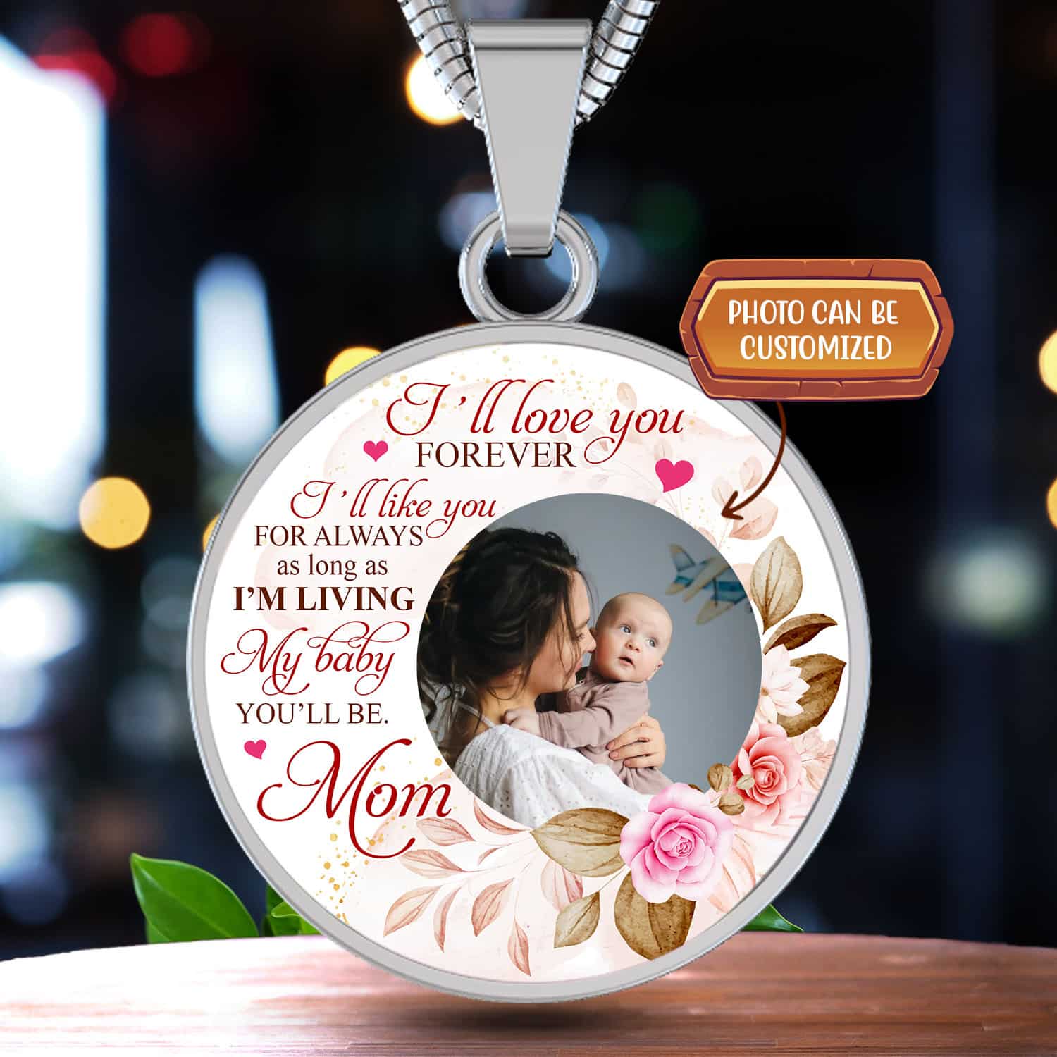 Let’s Shop Personalized Photo I’ll Love You Forever I’ll Like You for Always From Mom Circle Pendant Necklace!