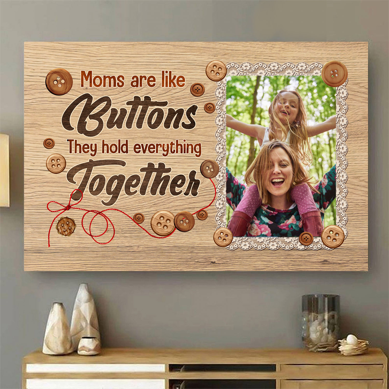 Let’s Shop Personalized Photo Moms Are Like Buttons Framed Canvas Prints – Unframed Poster – Home Decor Wall Art!