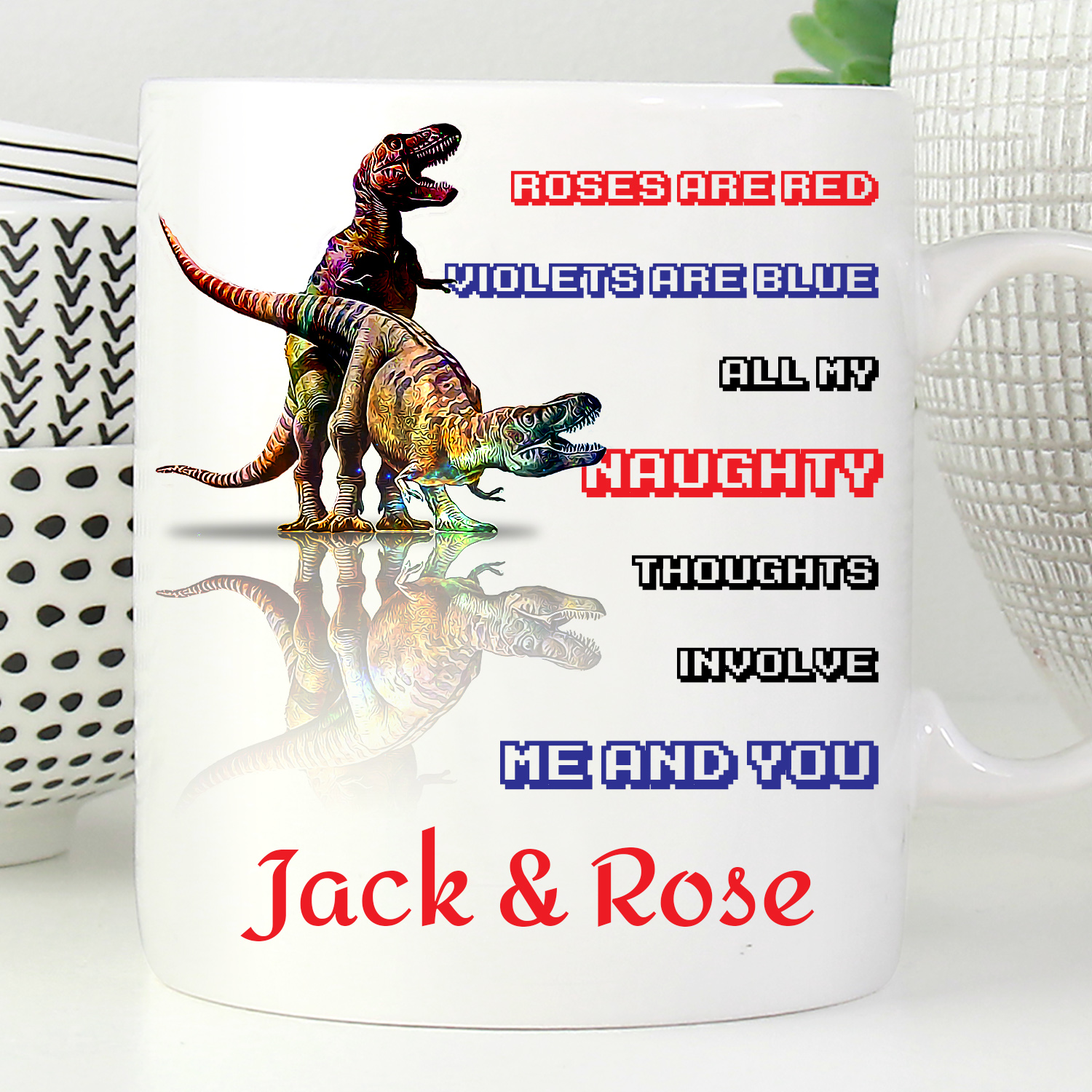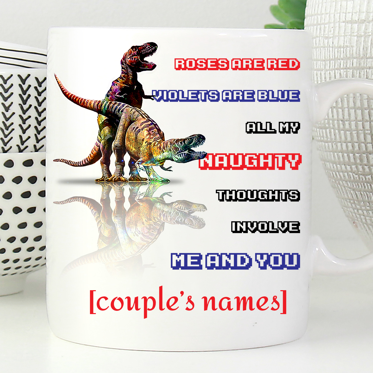 Let’s Shop Personalized Dinosaur Couple Roses Are Red Violets Are Blue Ceramic Coffee Mug – Beer Stein – Water Bottle!