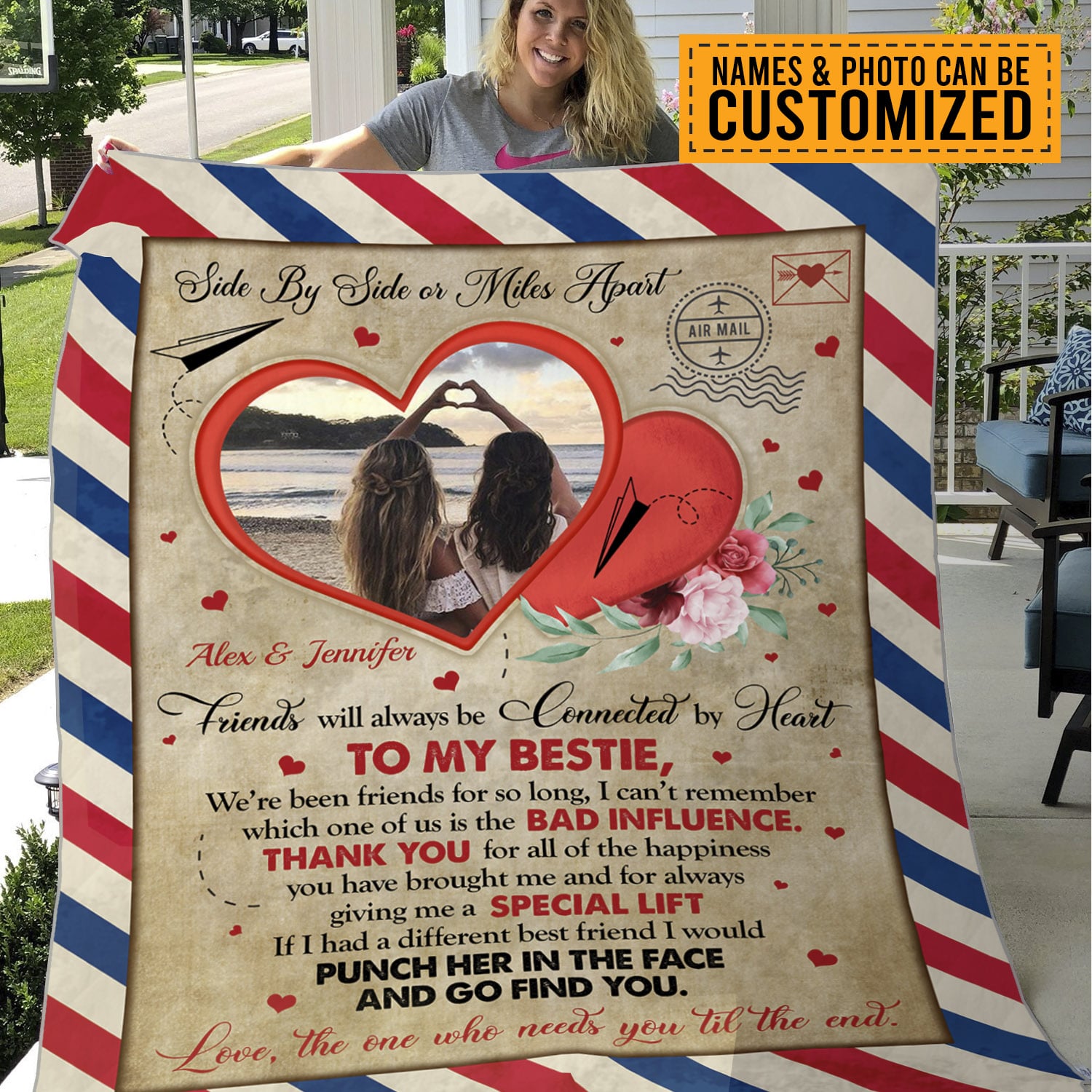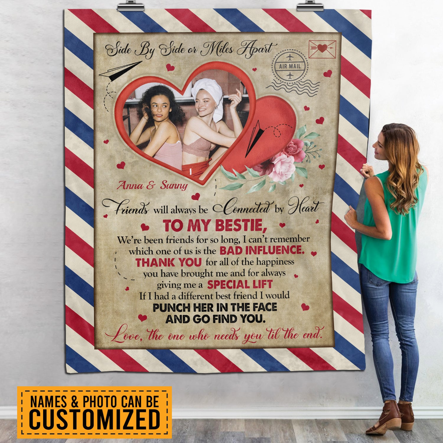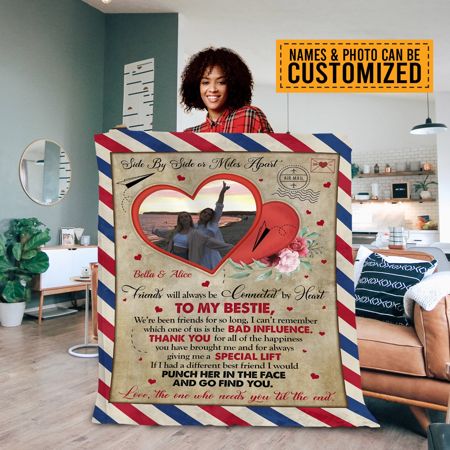 Let’s Shop Custom Photo Airmail Letter To My Bestie Side By Side Or Miles Apart Fleece Blanket – Personalized Best Friend Blanket!