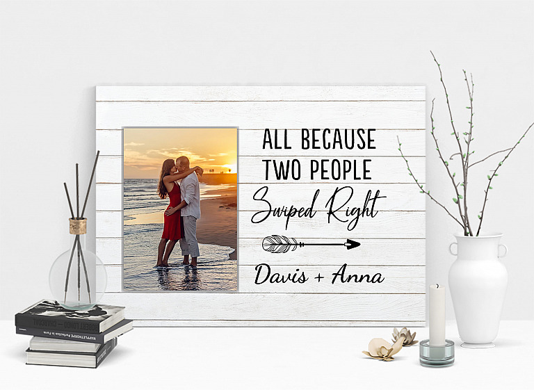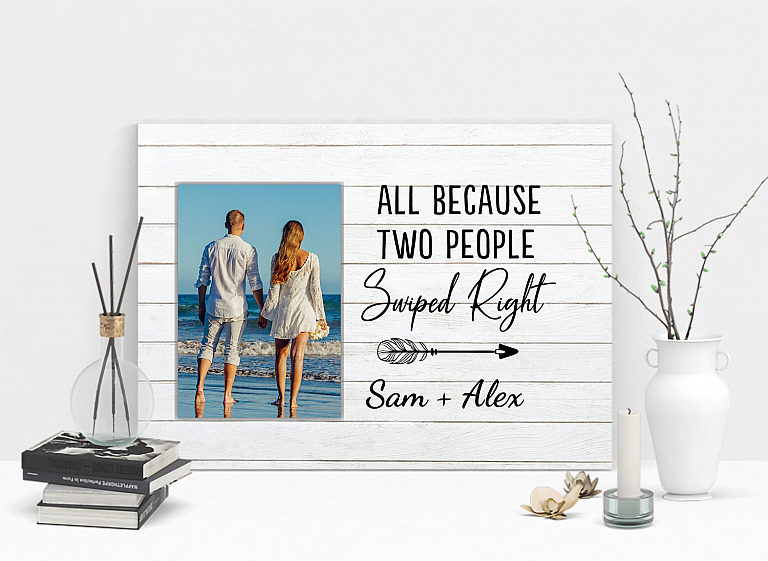 Let’s Shop Personalized Custom Photo All Because Two People Swiped Right Wrapped Framed Canvas Prints – Unframed Poster!