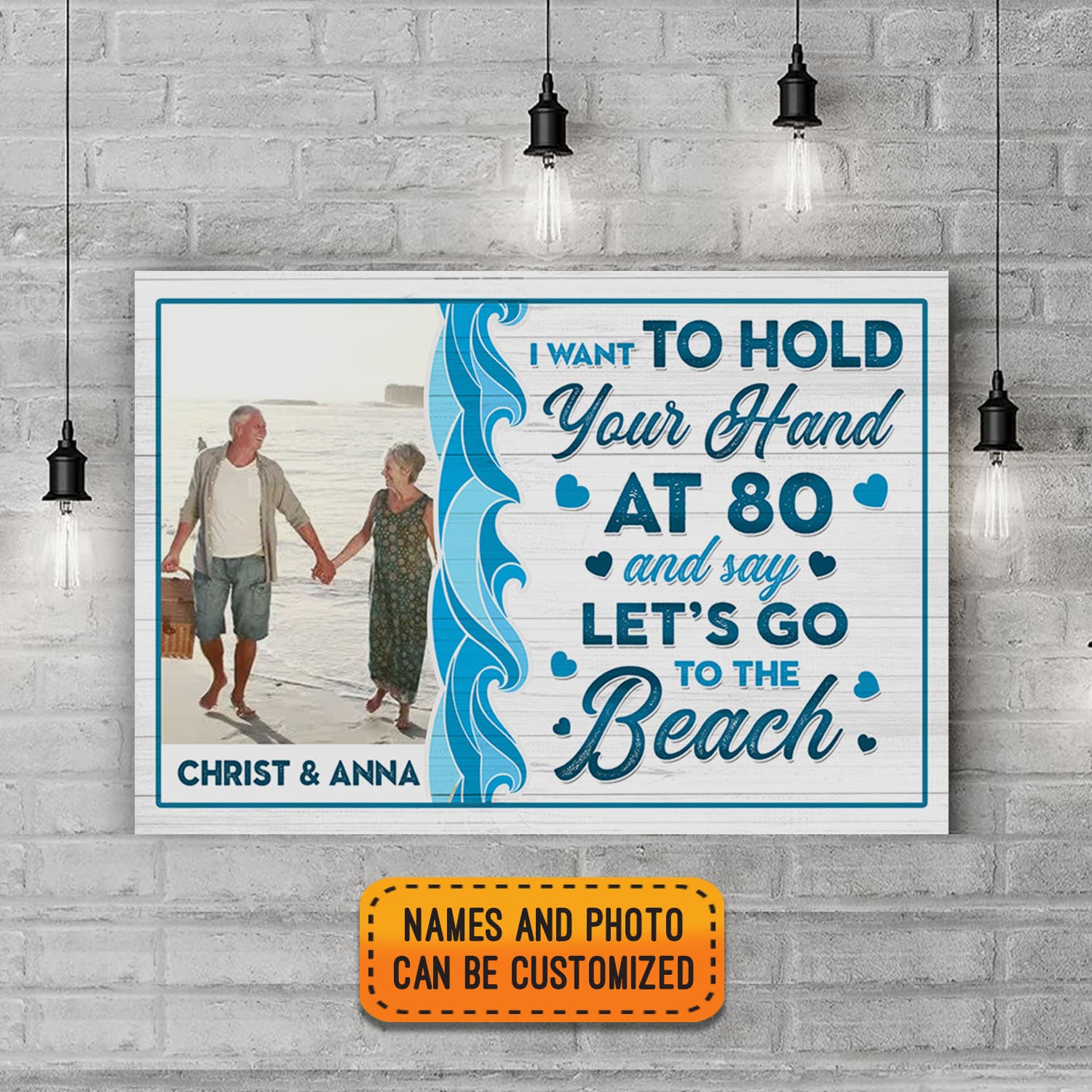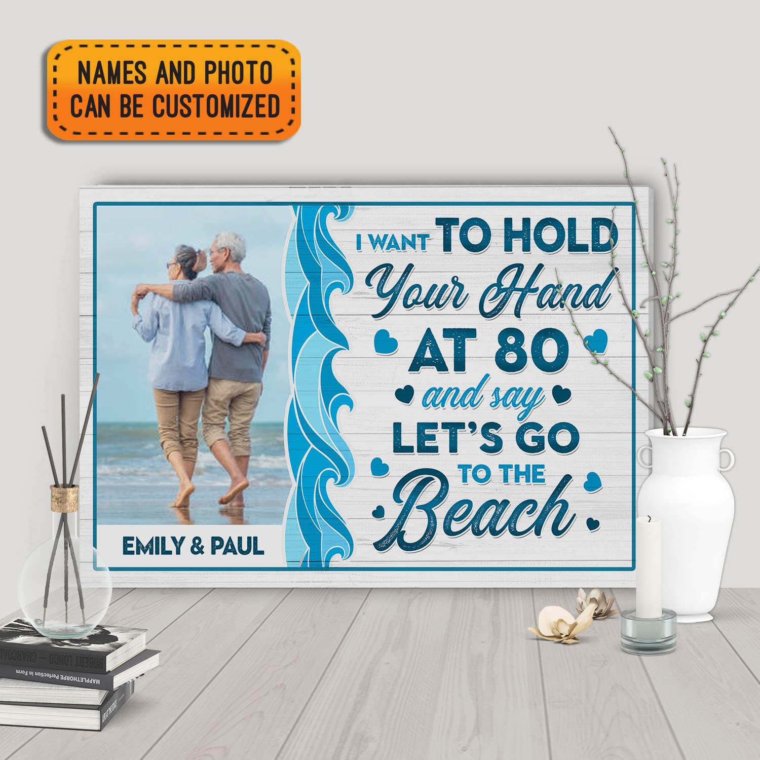 Let’s Shop Custom Photo Anniversary Gift for Couple I Want to Hold Your Hand at 80 and Say Let’s Go to The Beach Gallery Wrapped Canvas Print – Home Decor Wall Art!