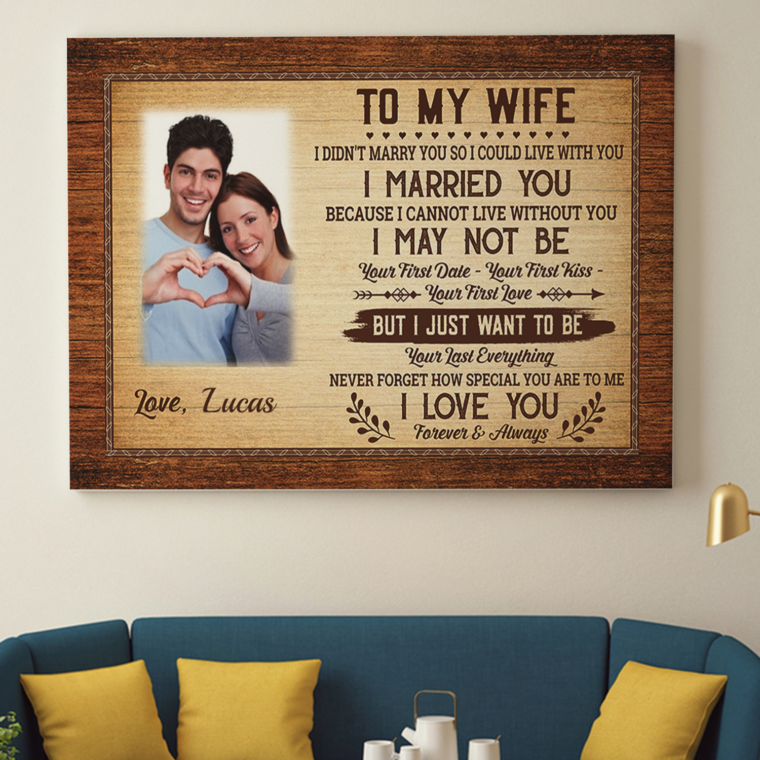 Are you spending too much time to find creative merchandise for you or suitable & special gifts for your mommy, your daddy, your son, your daughter, your children, your friends or someone you love? The struggle is over because we have various To My Wife I Didn’t Marry You so I Could Live with You, Husband to My Wife Canvas, to My Wife when I Tell You I Love You, Personalized Canvas with Photo, Personalized Photo Poster, Personalized Wedding Gift, Personalized Wedding Sign, Personalized Wedding Gifts for The Couple, Personalized Anniversary Gifts which will make perfect presents for your beloveds. In order to make your present stand out, we have created lots of unique and awesome customized photo gifts & personalized designs.