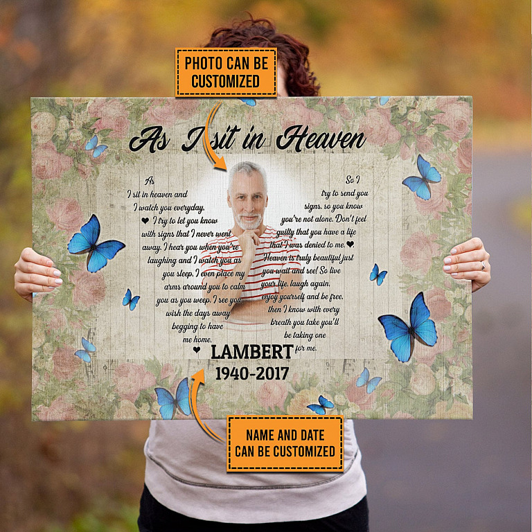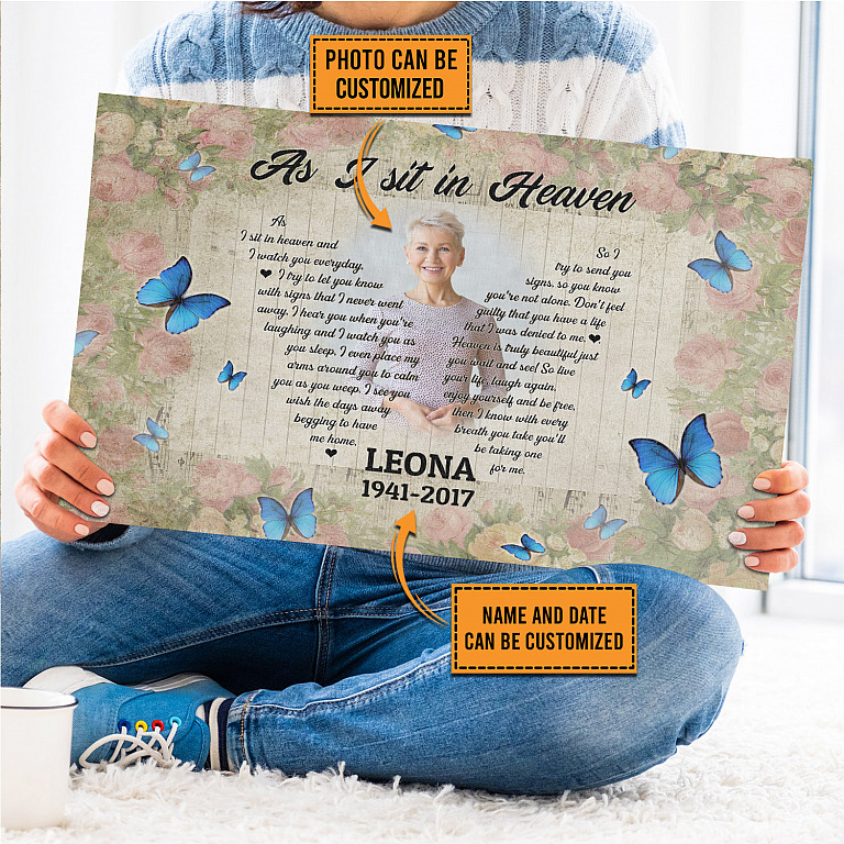Let’s Shop Custom Photo Remembrance as I Sit in Heaven Framed Canvas – Unframed Poster – Home Decor Wall Art!
