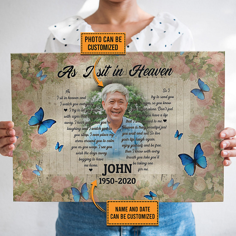 At CubeBik, besides canvases, we also offer tees, hoodies, sweaters, raglans, tanks, wall arts, posters, mugs, blankets, engraved jewelry, personalized necklaces, printed face masks, throw pillows, tote bags, hats, accessories and more on our website, so do not miss our other in Memory of My Dad, Quotes for Dad in Heaven, as I Sit in Heaven, as I Sit in Heaven Poem, as I Sit in Heaven and Watch You Everyday, as I Sit in Heaven Printable, as I Sit in Heaven Poem Butterfly, Remembrance as I Sit in Heaven Canvas, in Loving Memory, Personalized Memorial Gift related merchandise. Moreover, all the products are made-to-order and one of a kind custom designs you can’t get elsewhere in normal stores. Let’s discover CubeBik.com now and find your favorite personalized items. We can’t wait to surprise and build beautiful memories with you and your loved ones.