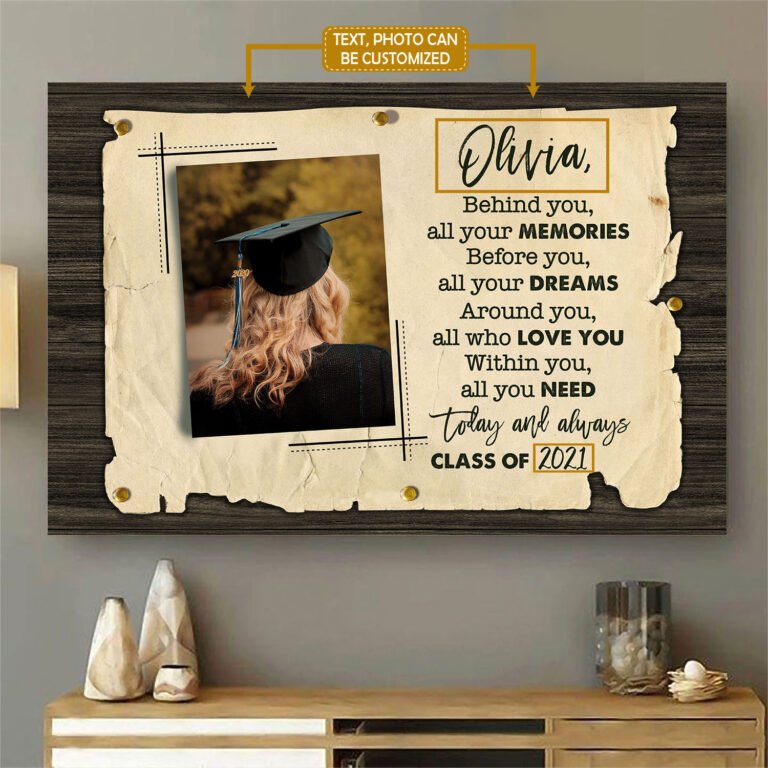 Are you spending too much time to find creative merchandise for you or suitable & special gifts for your mommy, your daddy, your son, your daughter, your children, your friends or someone you love? The struggle is over because we have various Custom Photo Behind You All Your Memories Before You All Your Dreams Canvas Poster, Graduation Day Gift, Graduation Day Gift For Her, Graduation Day Gift For Him, Graduation Day Canvas Poster, Graduation Day Gift For Daughter, Graduation Day Gift For Son which will make perfect presents for your beloveds. In order to make your present stand out, we have created lots of unique and awesome customized photo gifts & personalized designs.