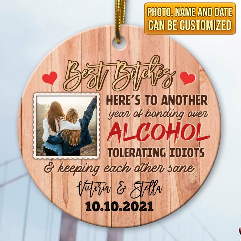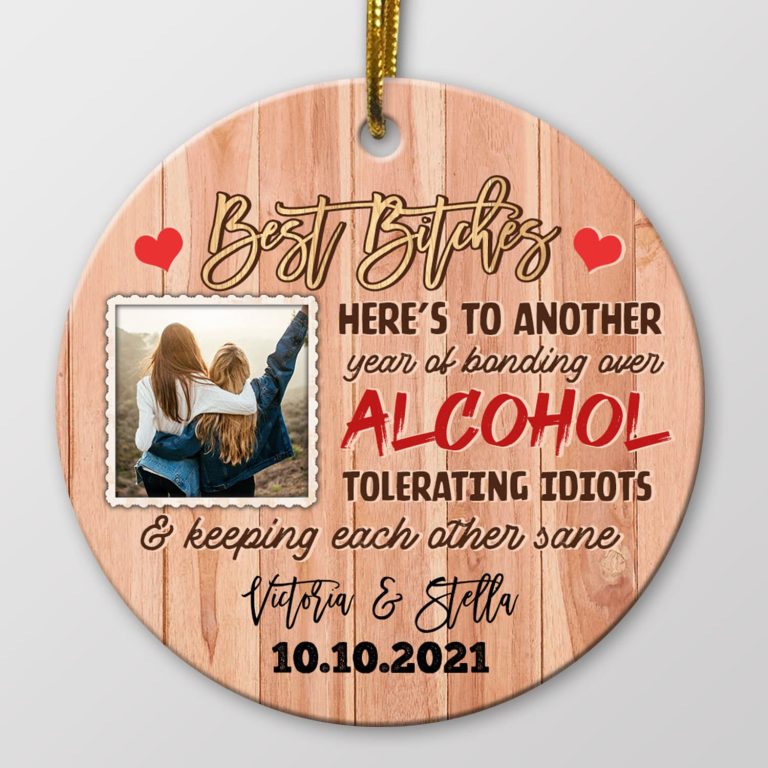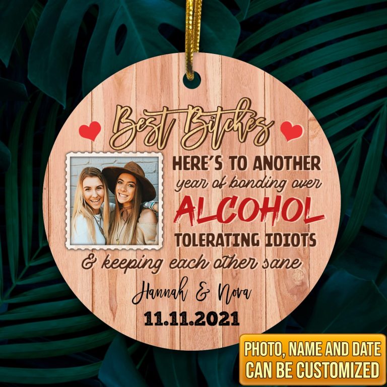 Let’s Shop Custom Photo Best Bitches Here’s To Another Year Or Bonding Over Alcohol Tolerating Idiots Circle Christmas Ornament!