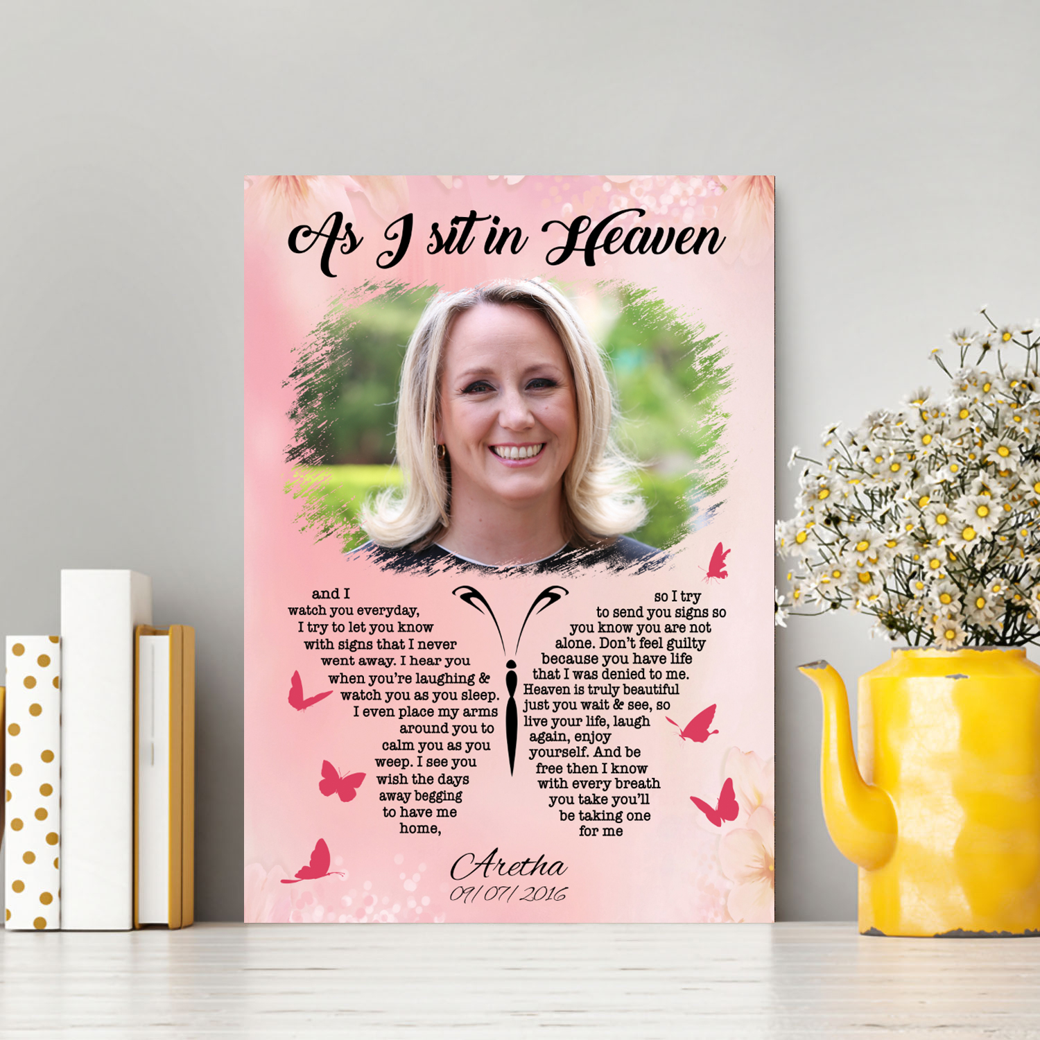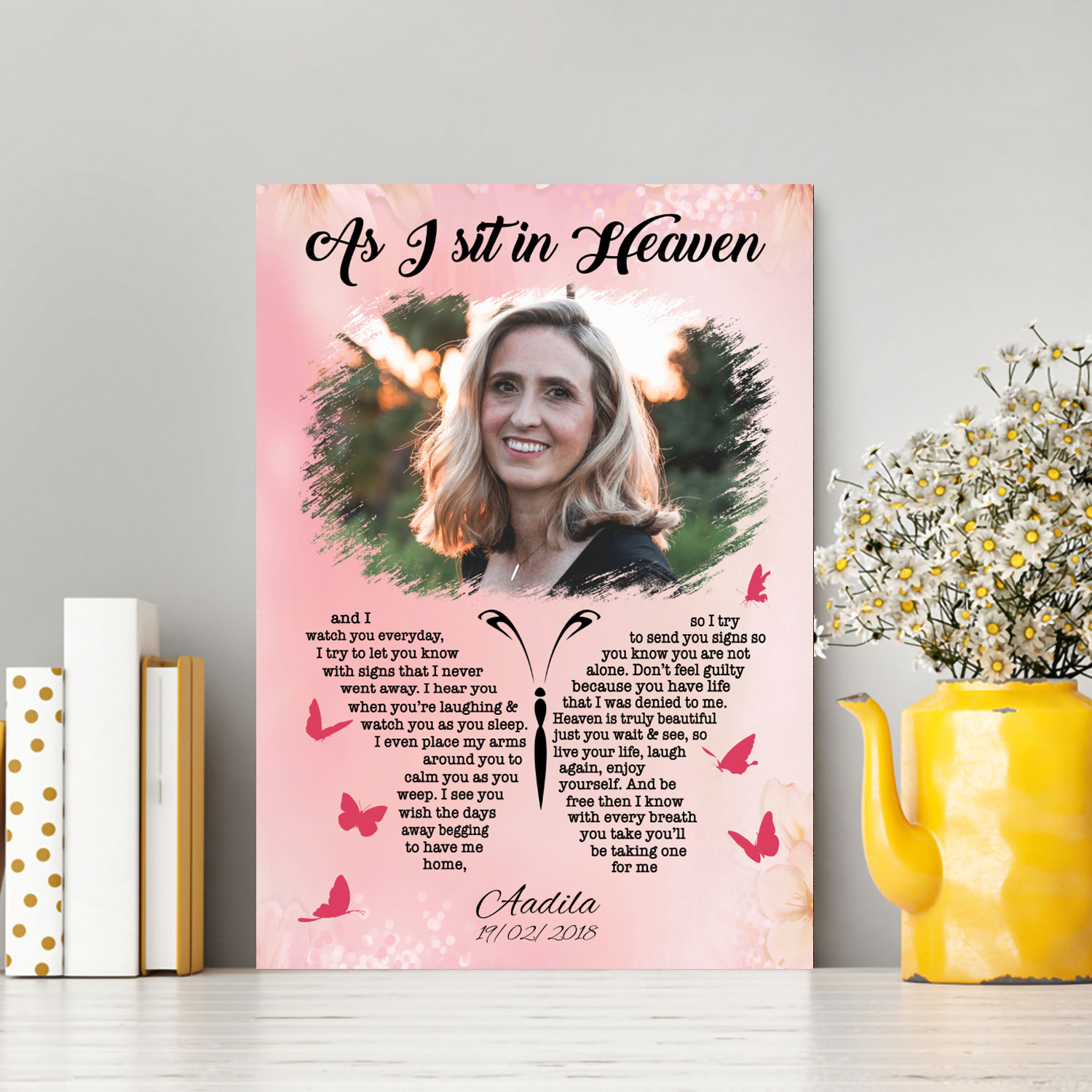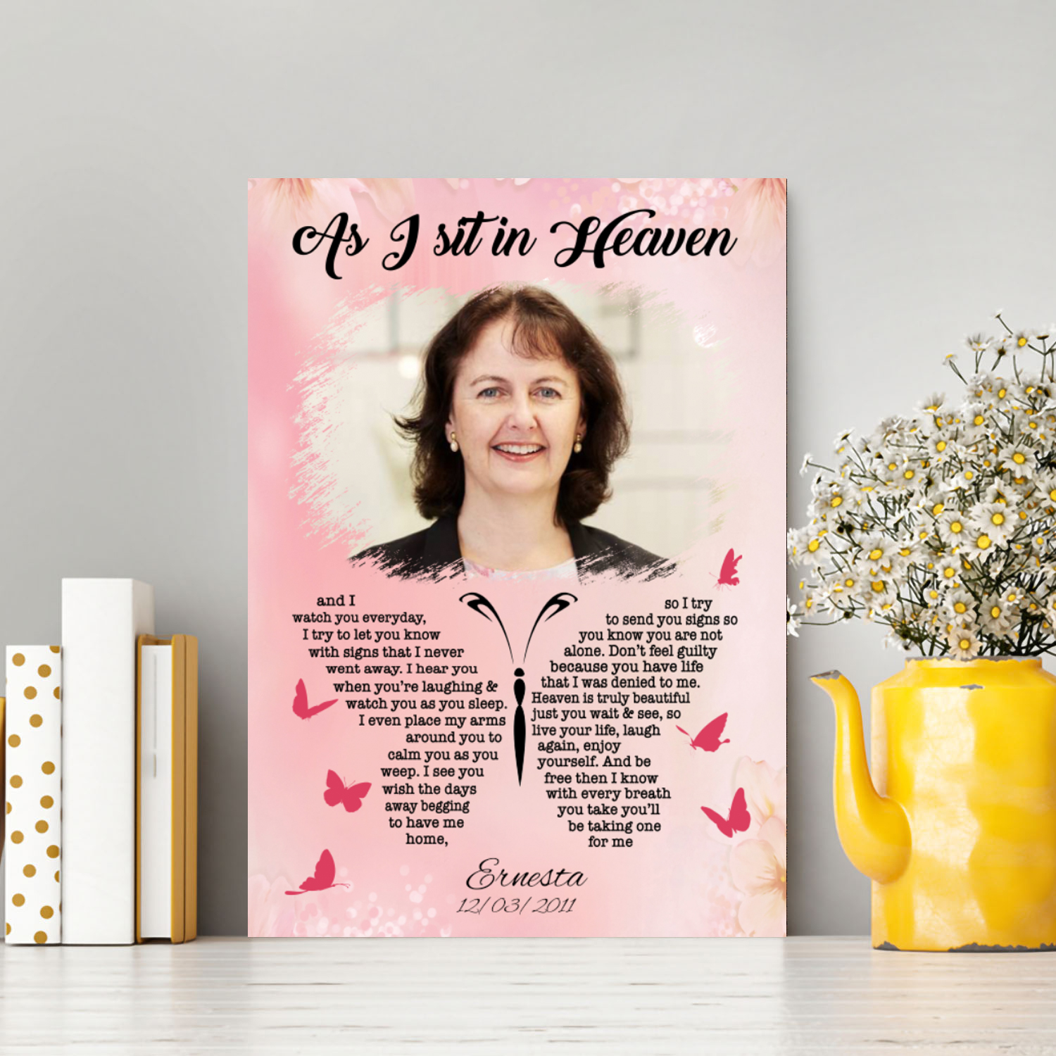 Are you spending too much time to find creative merchandise for you or suitable & special gifts for your mommy, your daddy, your son, your daughter, your children, your friends or someone you love? The struggle is over because we have various As I Sit in Heaven Canvas, Butterfly Memorial Canvas, as I Sit in Heaven Photo Canvas, Butterfly as I Sit in Heaven and I Watch You Everyday Customized Photo Memorial Canvas, as I Sit in Heaven and Watch You Everyday Butterfly Memorial Canvas, as I Sit in Heaven Personalized Photo Memorial Canvas, as I Sit in Heaven in Loving Memory Photo Canvas, Memorial Canvas with Photo, Memorial Canvas with Pictures, Butterfly Memorial Blanket which will make perfect presents for your beloveds. In order to make your present stand out, we have created lots of unique and awesome customized photo gifts & personalized designs.
