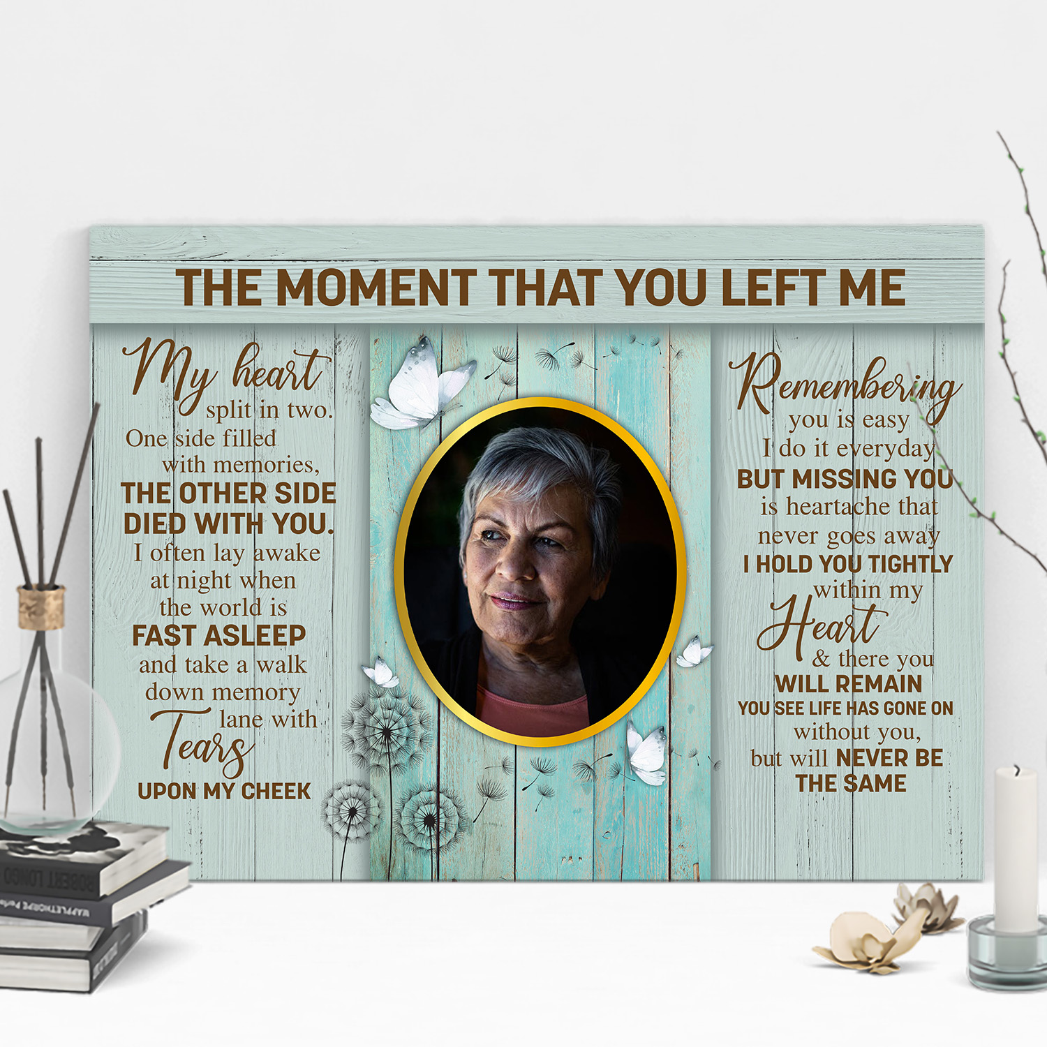Are you spending too much time to find creative merchandise for you or suitable & special gifts for your mommy, your daddy, your son, your daughter, your children, your friends or someone you love? The struggle is over because we have various The Moment You Left Me Canvas, Dandelion Memorial Canvas, the Moment You Left Me My Heart Split in Two Poster, the Moment You Left Me My Heart Was Split in Two Canvas, Memorial Dandelion Canvas, the Moment You Left Me Memorial Canvas Picture, the Moment You Left Me My Heart Split in Two Butterfly Memorial Canvas, Butterfly Dandelion Memorial Custom Canvas, Dandelion the Moment You Left Me Memorial Canvas Gifts, Loss of Loved One Inspirational Quotes which will make perfect presents for your beloveds. In order to make your present stand out, we have created lots of unique and awesome customized photo gifts & personalized designs.