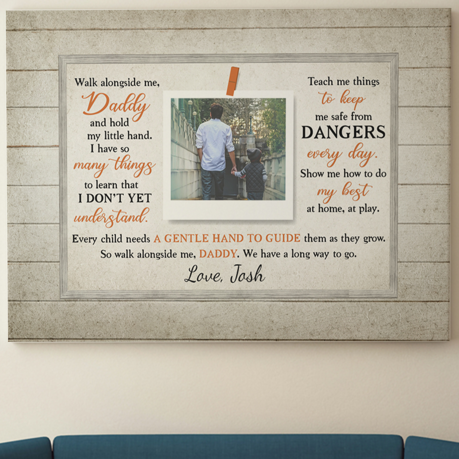 Let’s Shop Custom Photo Walk Alongside Me Daddy Wrapped Framed Canvas Prints – Unframed Poster – Home Wall Art!