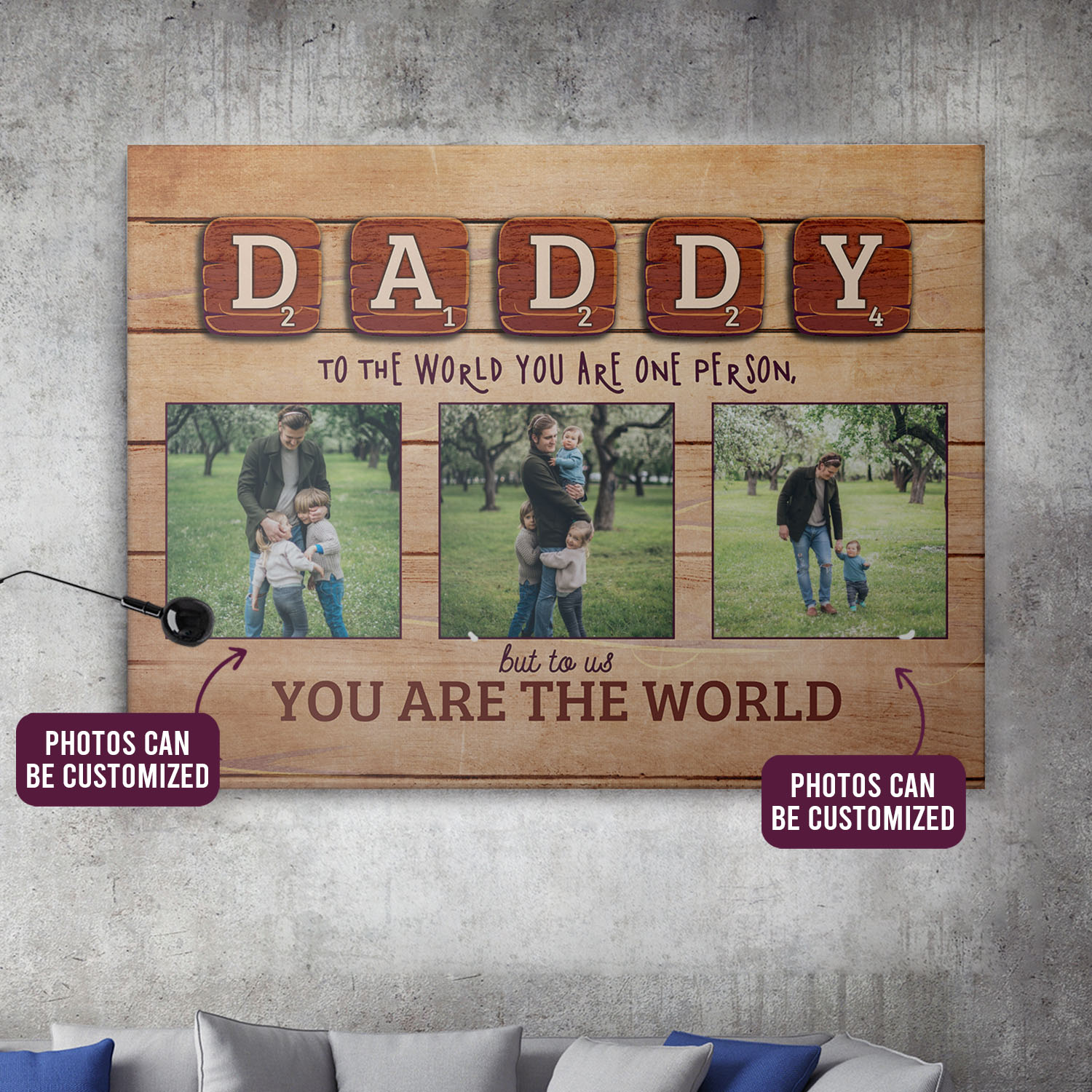 Let’s Shop Custom Photo to the World You Are One Person but to Us You Are the World Father’s Day Framed Canvas!