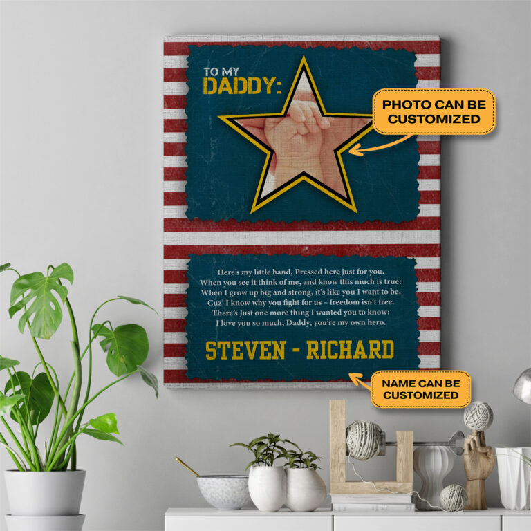 Let’s Shop Custom Photo Daddy You’re My Hero Military Dad Gift Framed Canvas – Unframed Poster – Home Wall Art!