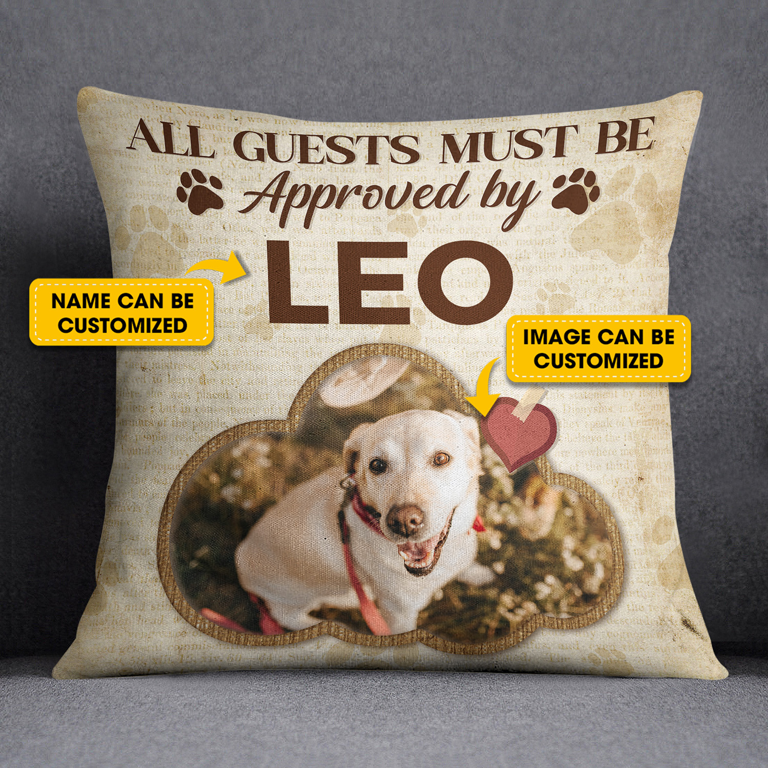 Let’s Shop Custom Photo Pet Lover All Guests Must Be Approved Throw Pillow – Decorative Pillow – Indoor Cushion!