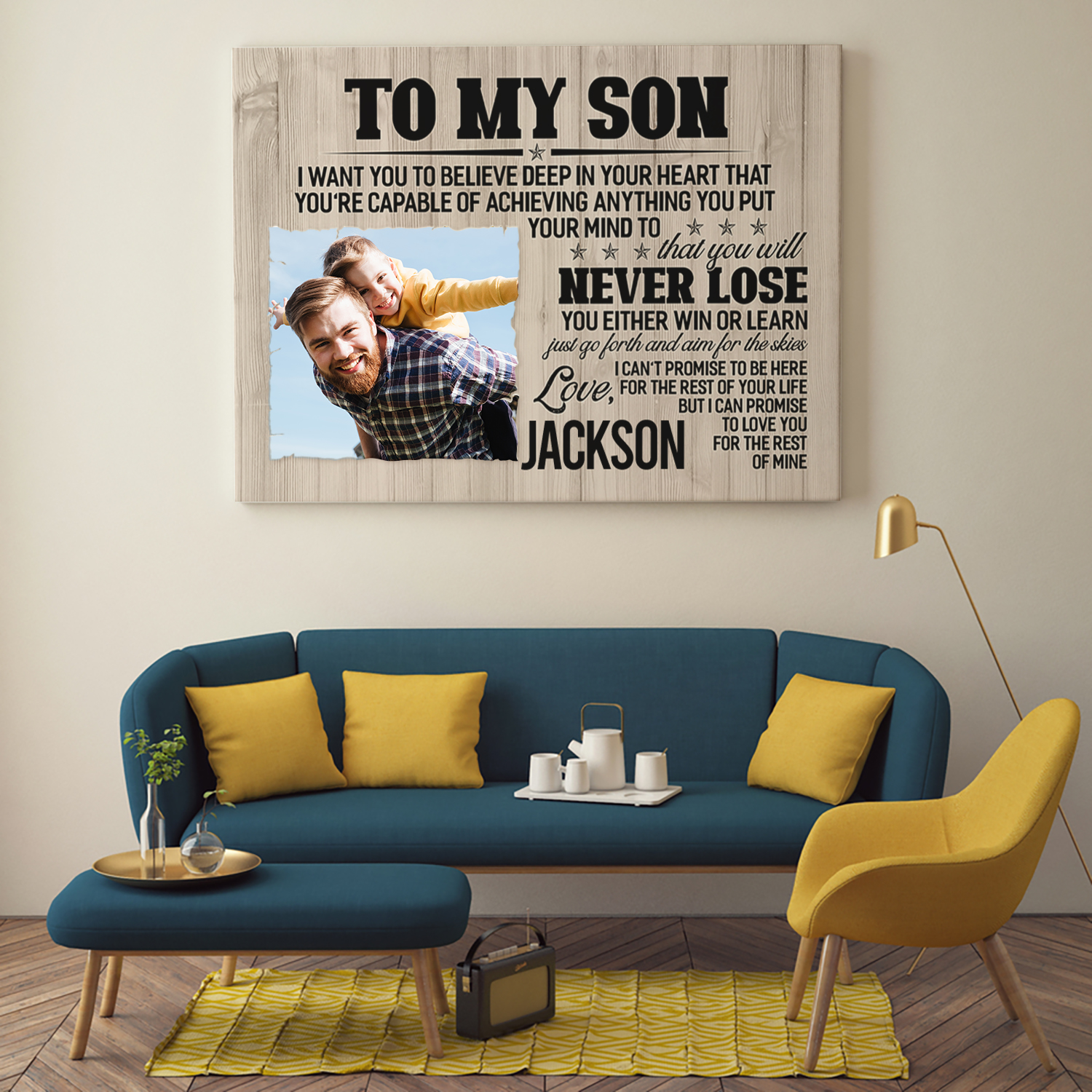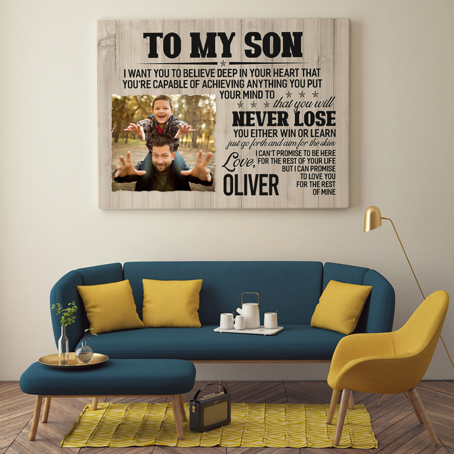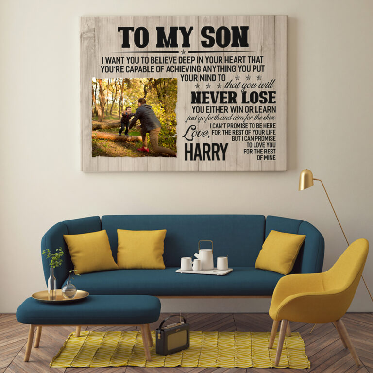 Let’s Shop Personalized Photo Dad to My Son I Want You to Believe Deep in Your Heart Framed Canvas – Unframed Poster!
