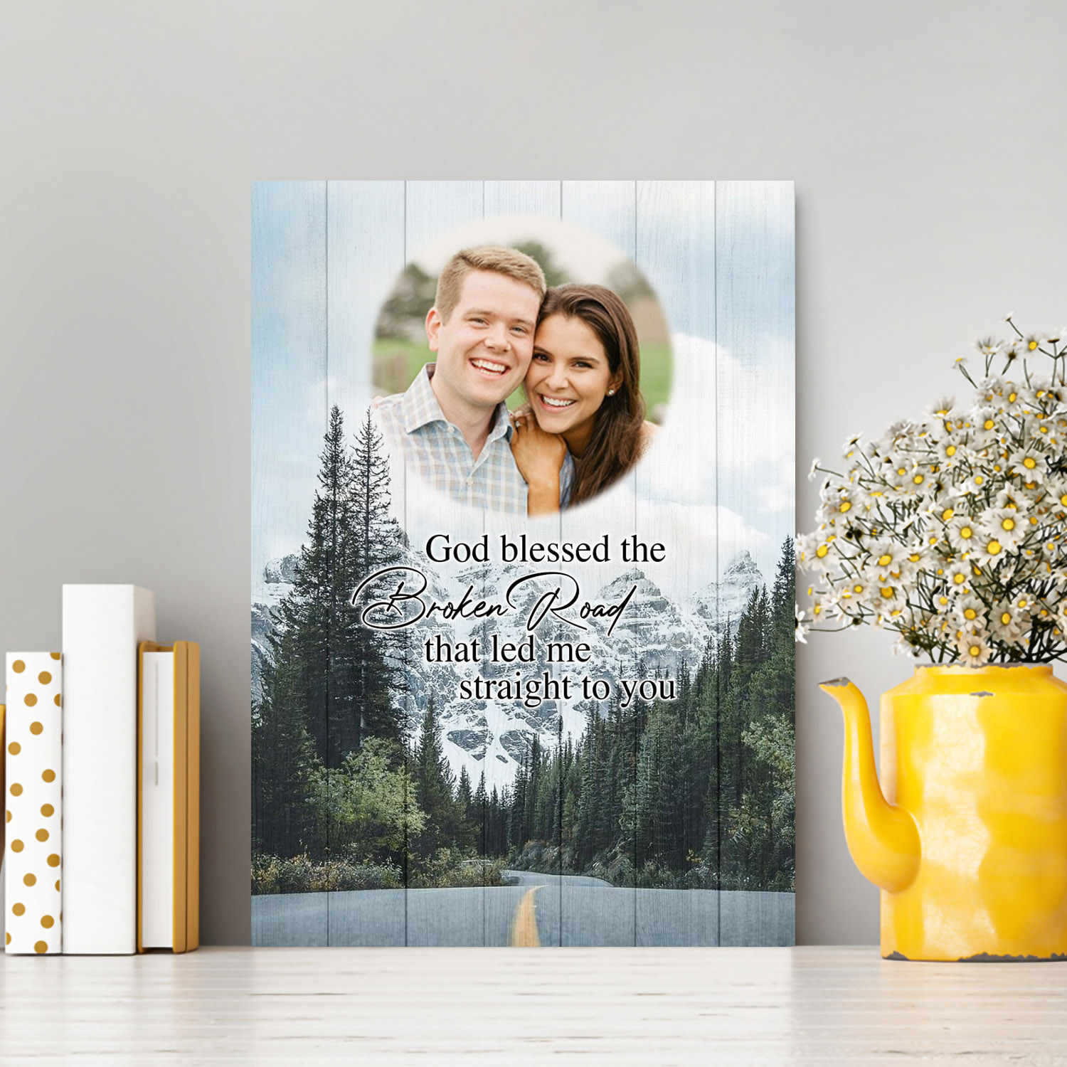 Let’s Shop Custom Photo God Blessed The Broken Road That Led Me To You Image Newly Wed Couple Framed Canvas – Unframed Poster!
