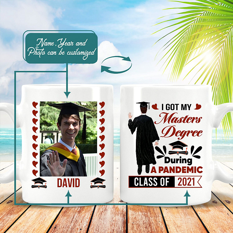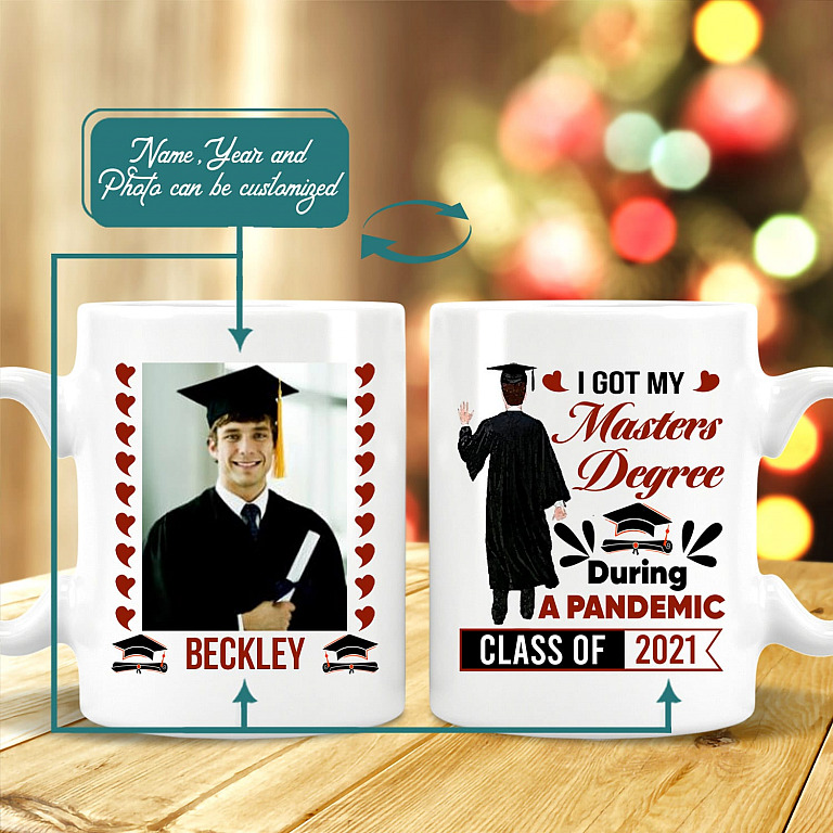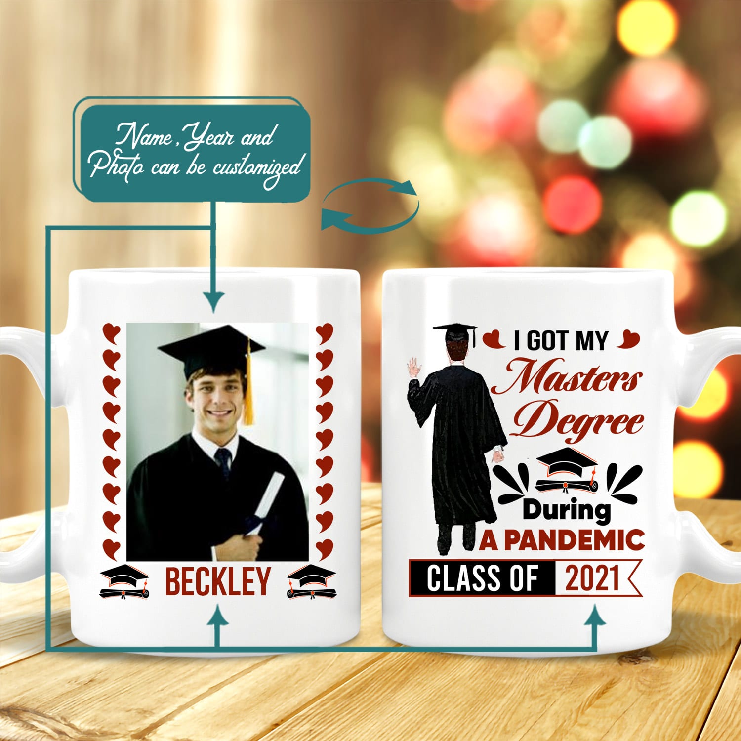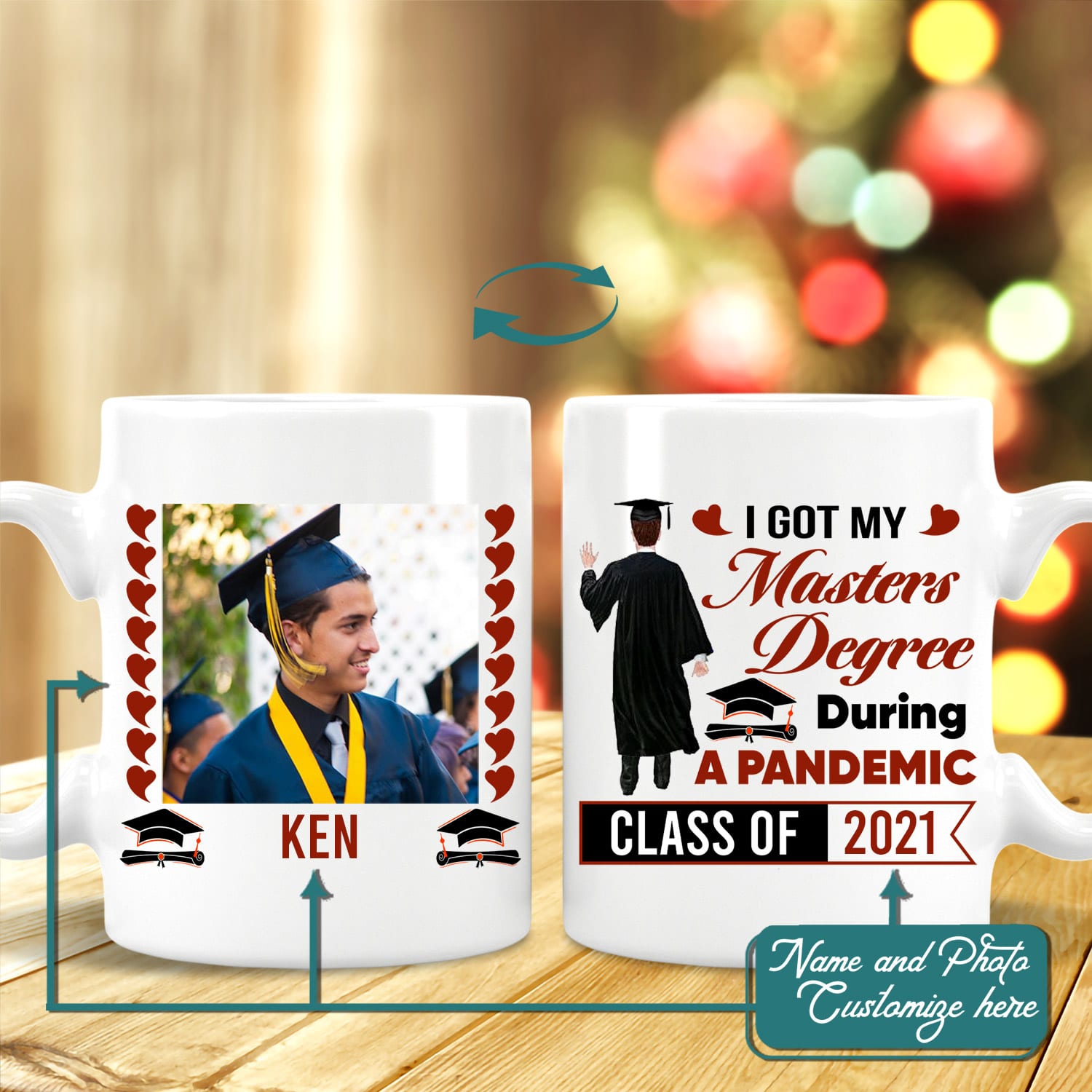 Let’s Shop Custom Photo Graduation Gift for Him I Got My Masters Degree During a Pandemic Coffee Mug – Water Bottle!