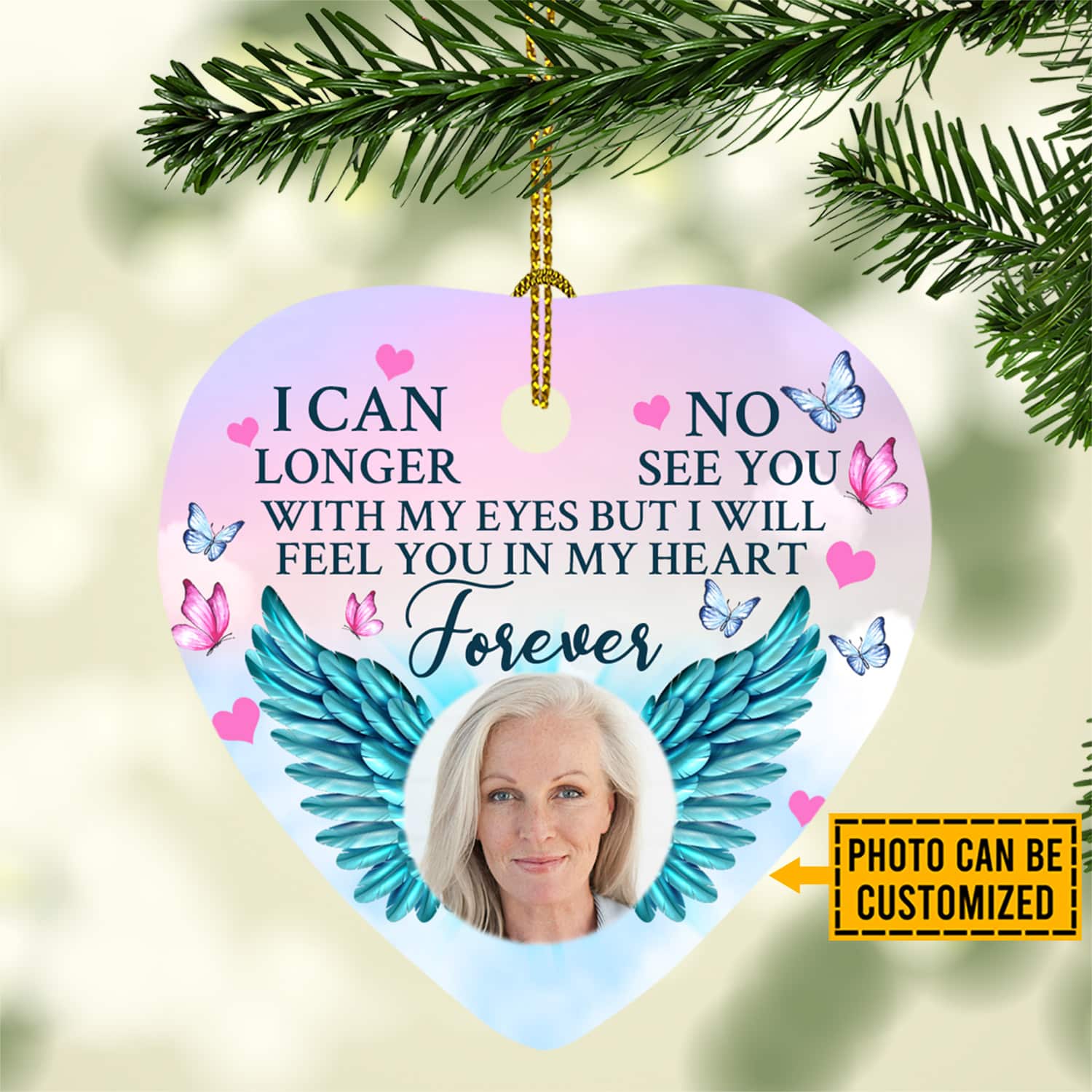 Let’s Shop Custom Photo I Can No Longer See You With My Eyes Personalized Memorial Heart Ornament!