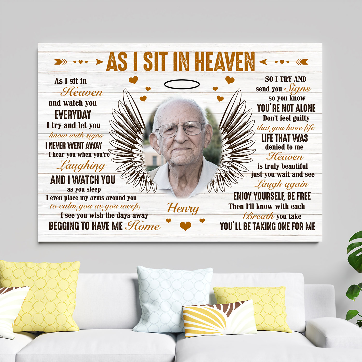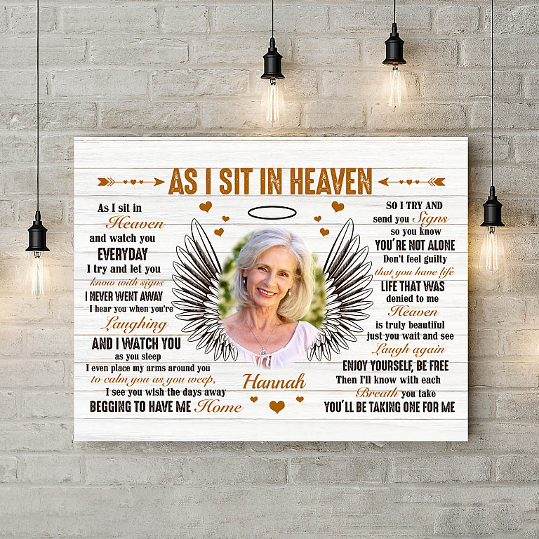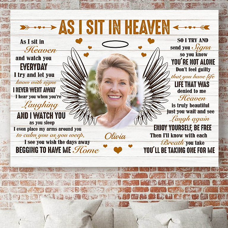 Let’s Shop Custom Photo as I Sit in Heaven Angel Wings Memorial Sympathy Gift Framed Canvas Prints – Unframed Poster!