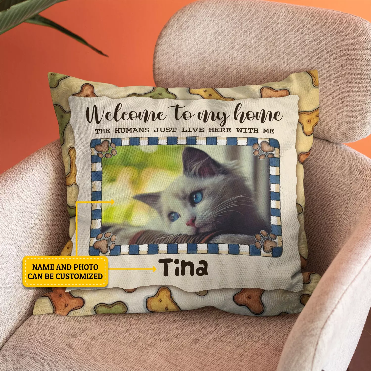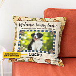 Let’s Shop Custom Photo Welcome To My Home Pet Paw Print Throw Pillow – Decorative Pillow – Indoor Outdoor Cushion!