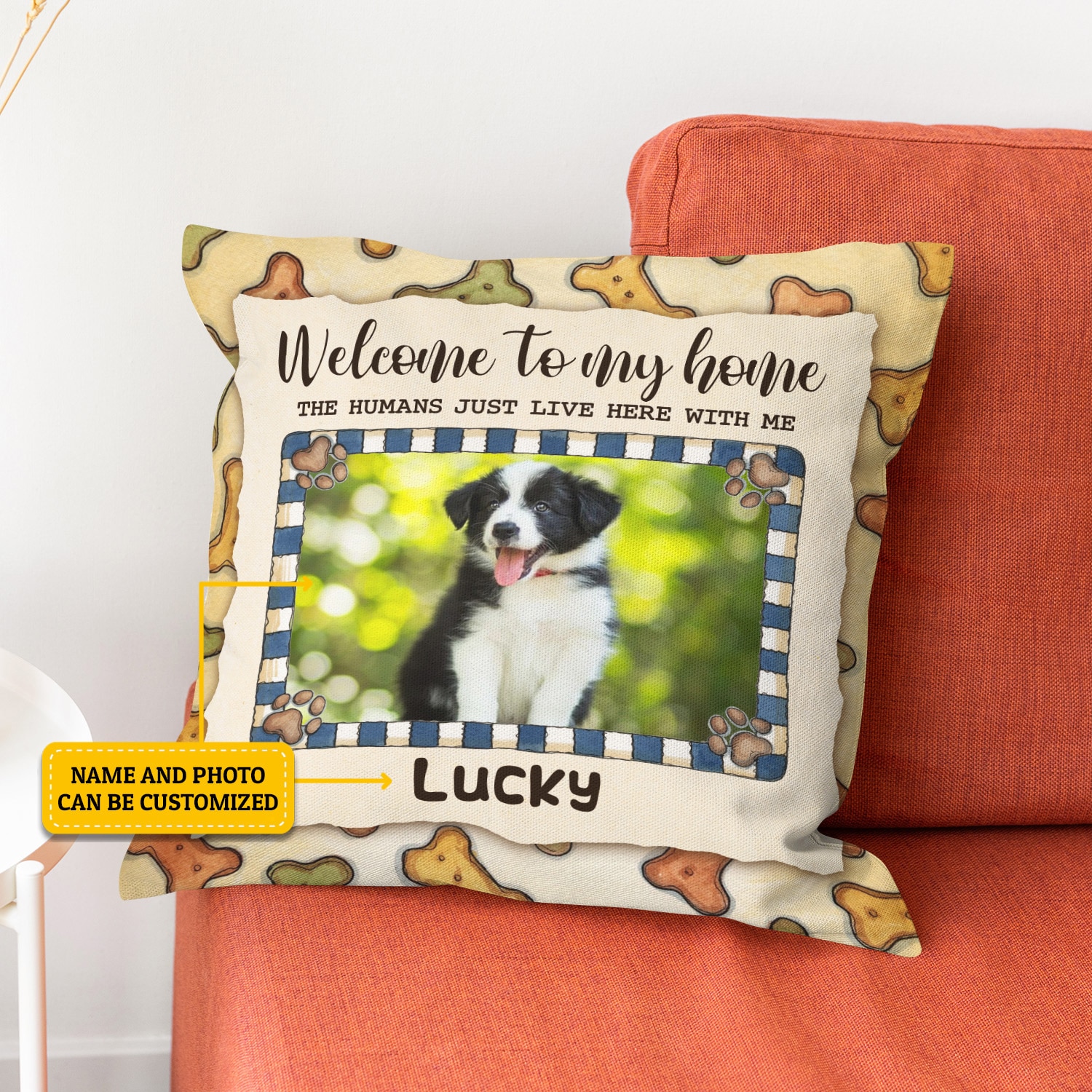 Are you spending too much time to find creative merchandise for you or suitable & special gifts for your mommy, your daddy, your son, your daughter, your children, your friends or someone you love? The struggle is over because we have various Welcome to My Home the Humans Just Live Here with Me, No Need to Knock I Know You’re Here, Paw Pattern, All Guests Must Be Approved Pillow, Personalized Dog Lovers Gift which will make perfect presents for your beloveds. In order to make your present stand out, we have created lots of unique and awesome customized photo gifts & personalized designs.