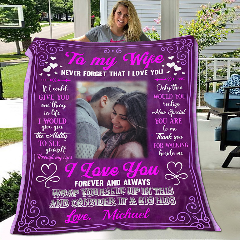 Let’s Shop Custom Photo to My Wife Never Forget That I Love You Fleece Blanket – Sherpa Blanket – Woven Blanket!