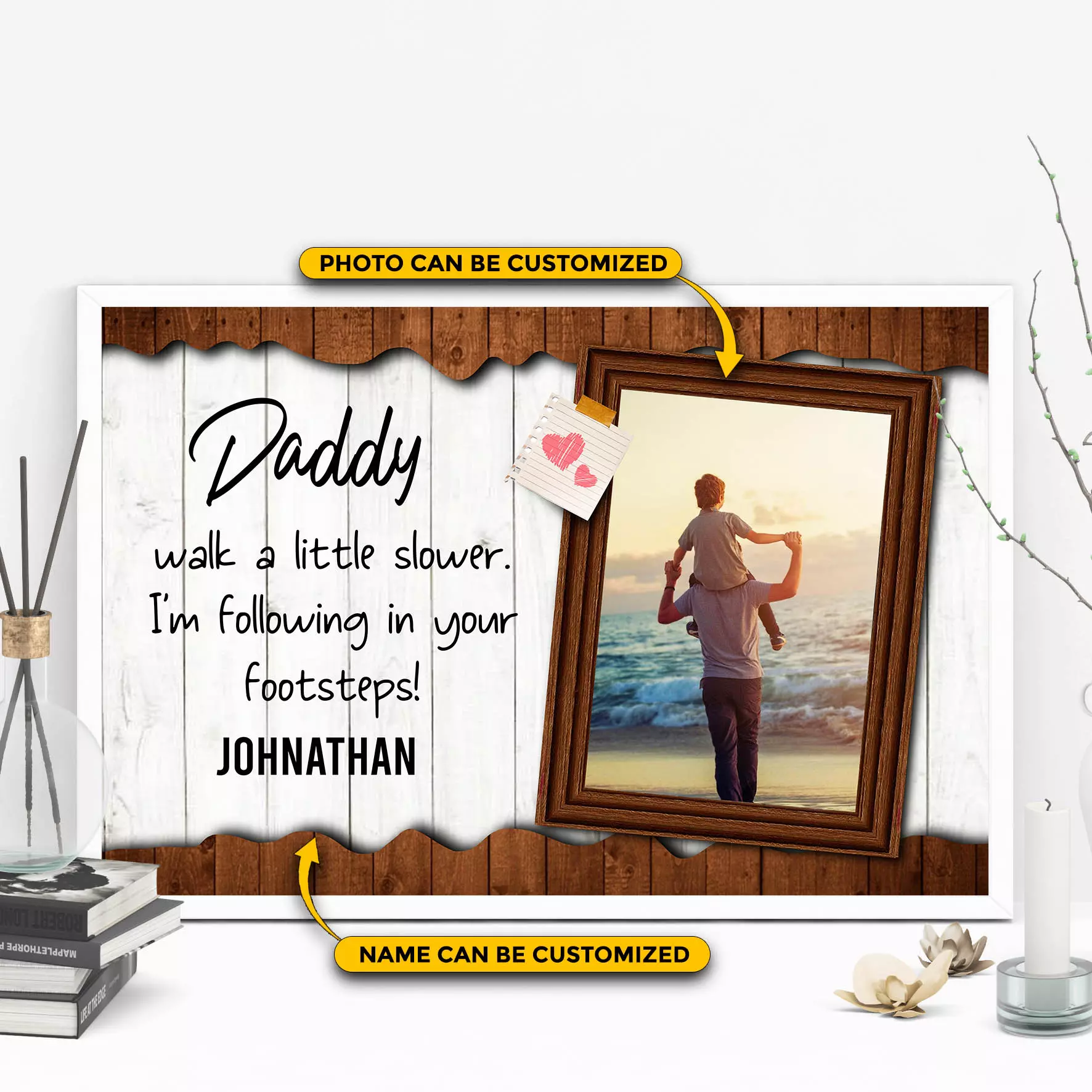 Are you spending too much time to find creative merchandise for you or suitable & special gifts for your mommy, your daddy, your son, your daughter, your children, your friends or someone you love? The struggle is over because we have various Personalized Picture Frame for Daddy, Dad Gift Personalized Picture Frame, Fathers Day Gifts from Daughter, Father and Daughter Gifts, Dad and Son Gift, Fathers Day Gifts from Son, Personalized Father’s Day Gift, Father’s Day Frame, Engraved Gifts for Dad, Message to Dad, Personalized Photo Gifts for Dad, Walk with Me Daddy, Personalized Dad Gifts, Father Day Photo Gifts, Daddy Photo Gifts, a Daughter’s First Love, a Son’s First Hero, Walk a Little Slower Daddy, Following in Your Footsteps which will make perfect presents for your beloveds. In order to make your present stand out, we have created lots of unique and awesome customized photo gifts & personalized designs.