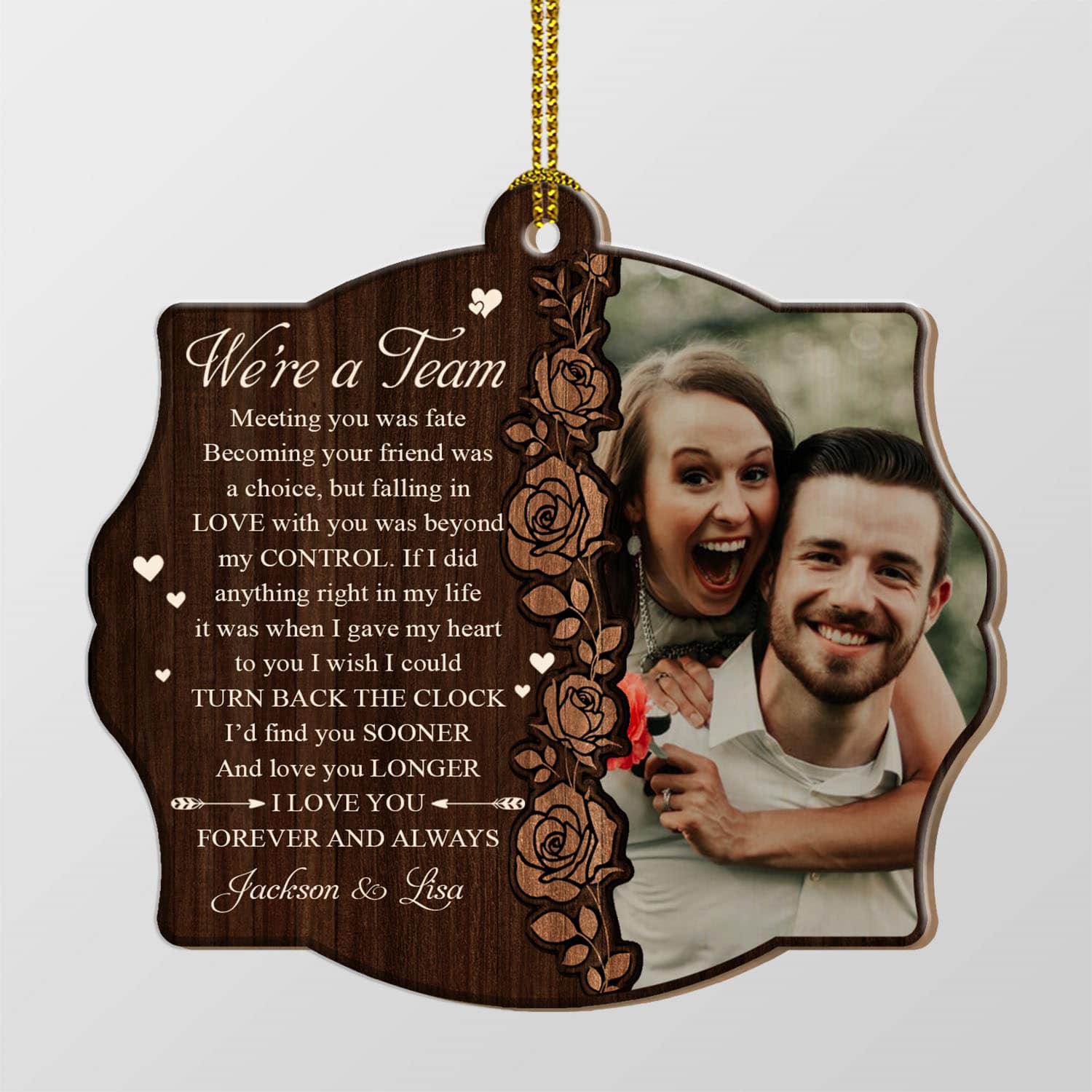 Are you spending too much time to find creative merchandise for you or suitable & special gifts for your mommy, your daddy, your son, your daughter, your children, your friends or someone you love? The struggle is over because we have various We’re A Team Wall Decor, We’re A Team Sign, We’re A Team Picture, Personalized Anniversary Gifts, Custom Anniversary Gifts, Couples Ornament Personalized, Anniversary Ornament For Couple, Anniversary Photo Gifts, Personalized Picture Frames For Couples, Personalized Anniversary Gifts For Couple, Couples Ornament, Personalized Couple Ornament, Personalized Picture Frame Ornament which will make perfect presents for your beloveds. In order to make your present stand out, we have created lots of unique and awesome customized photo gifts & personalized designs.