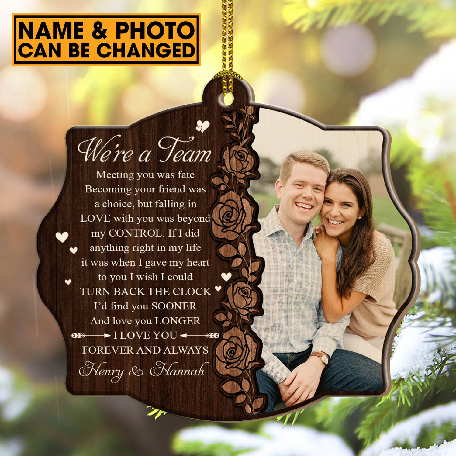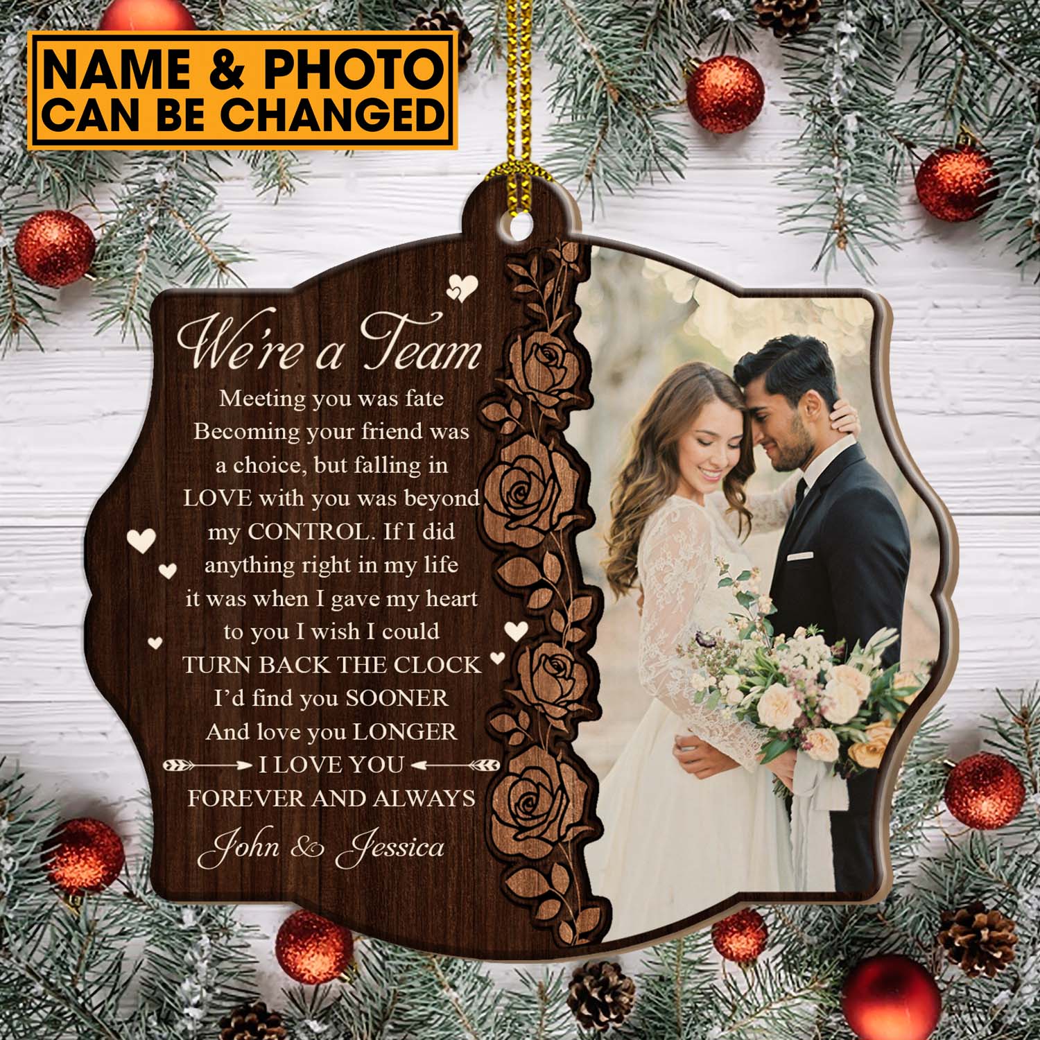 Let’s Shop Custom Photo We’re A Team Meeting You Was Fate Personalized Couple Name Custom Shaped Christmas Ornament!