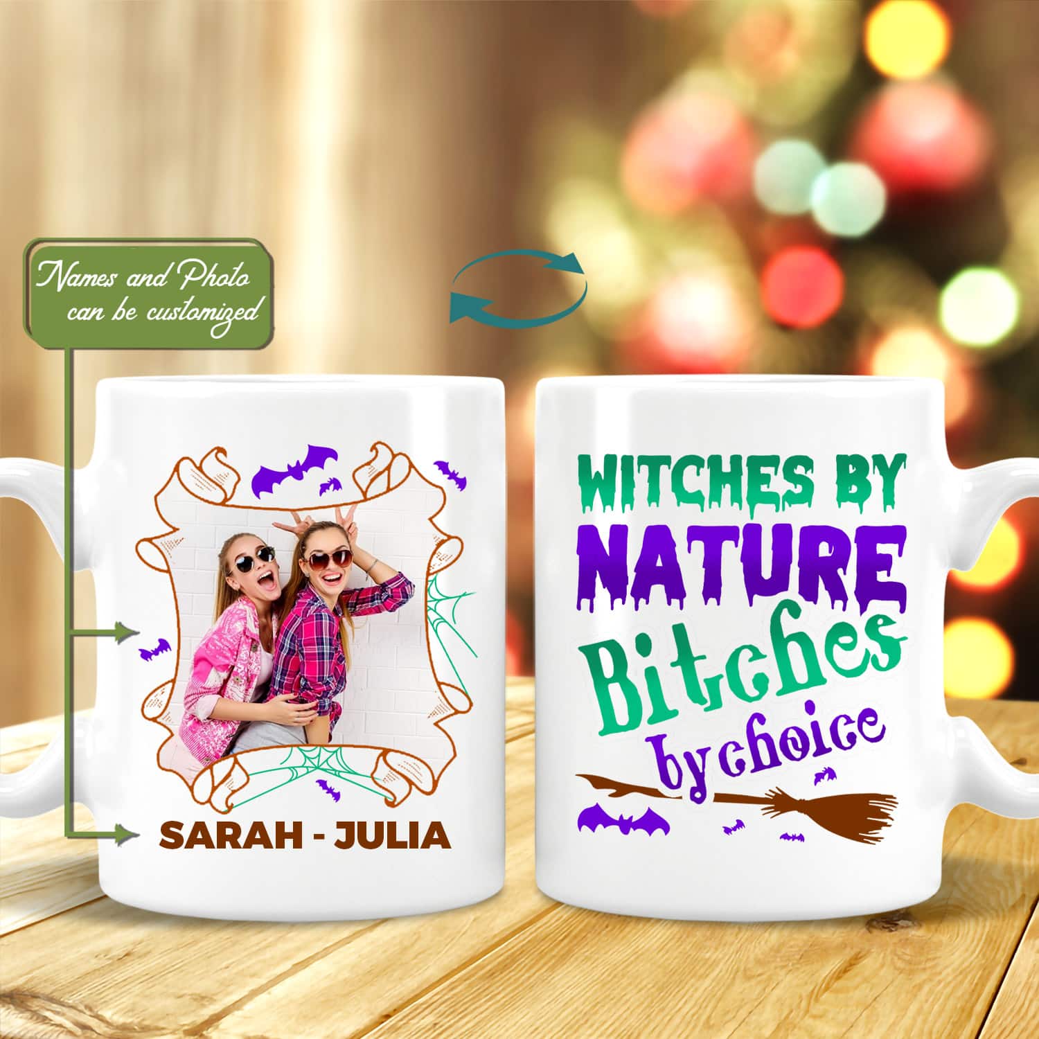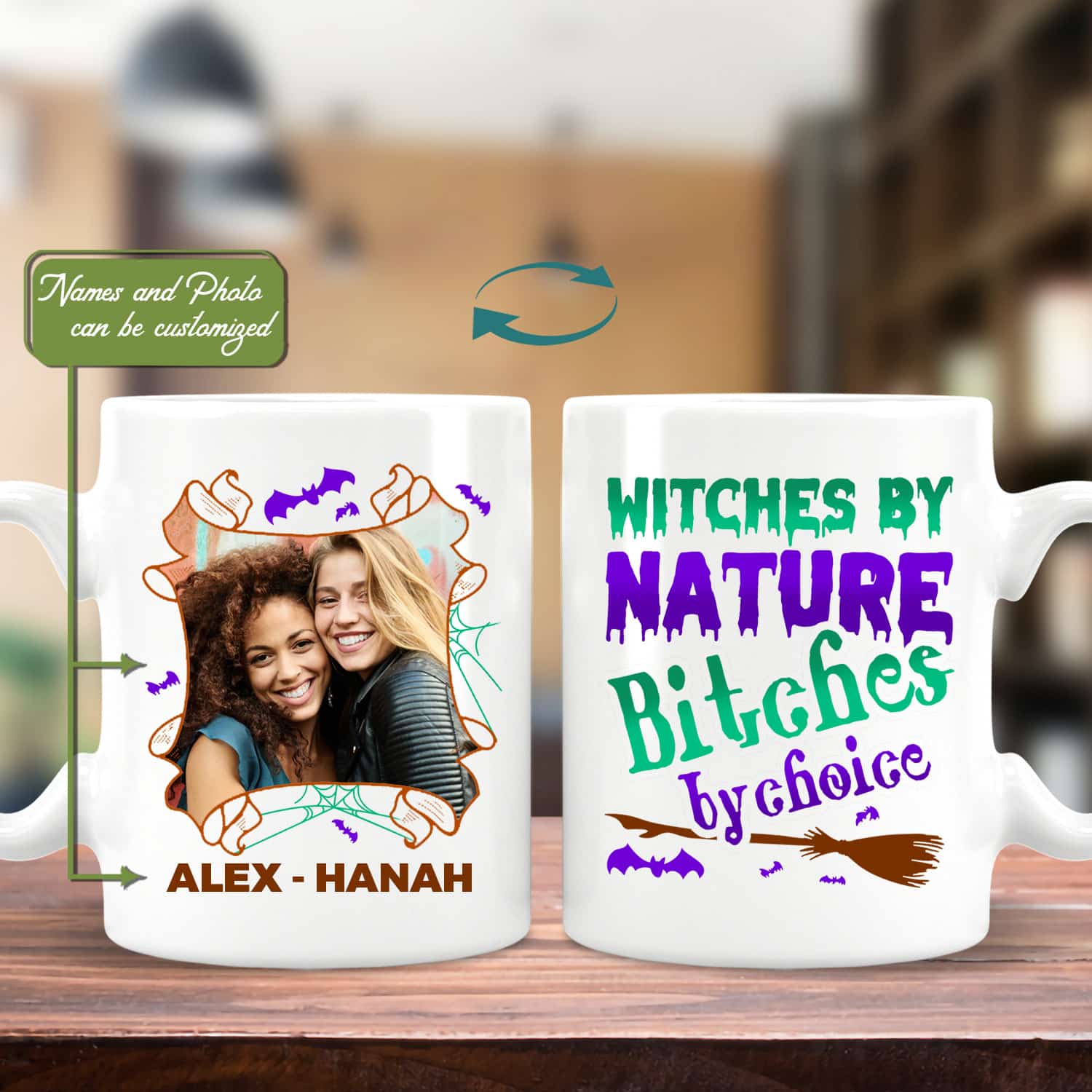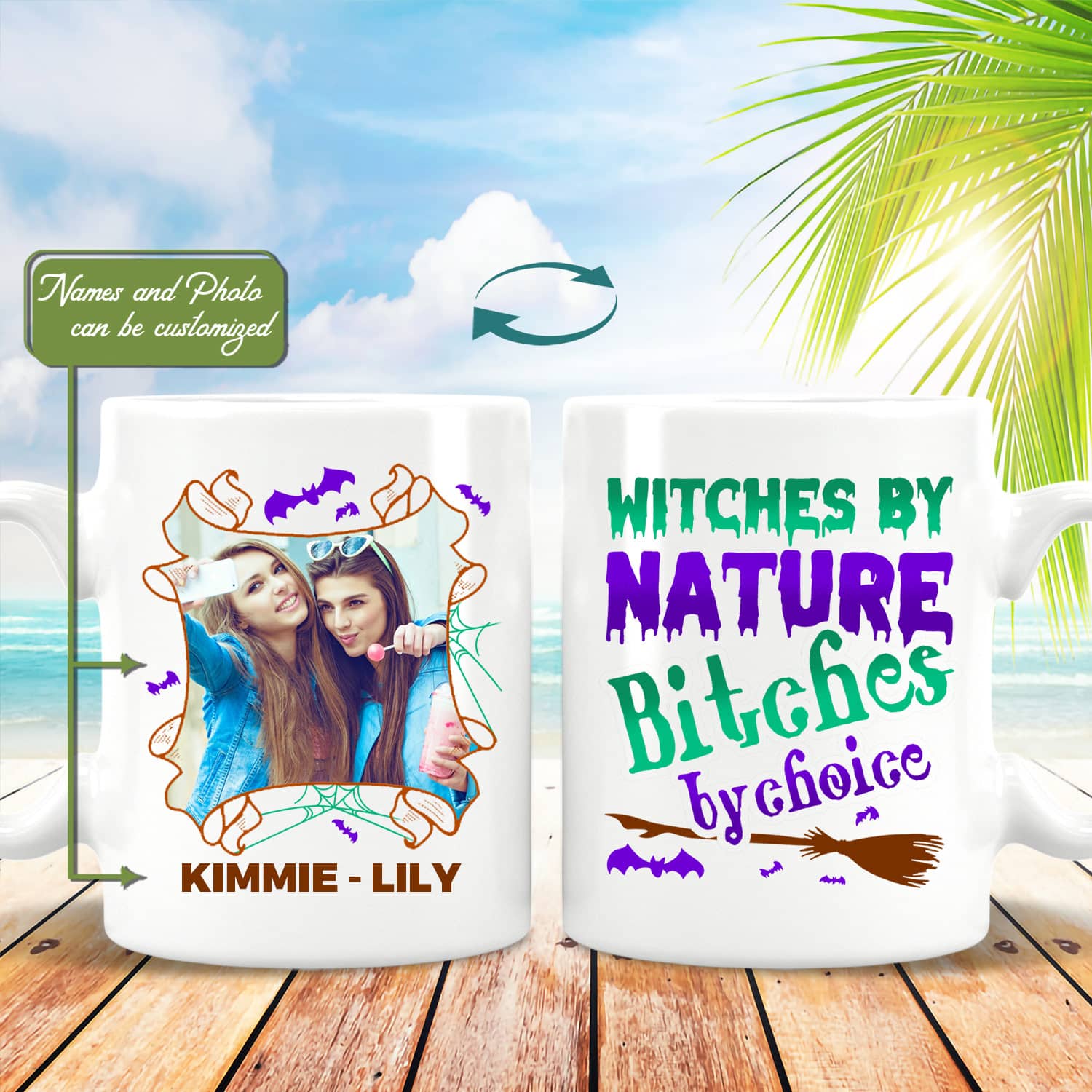Let’s Shop Custom Photo Witches By Nature Bitches By Choice Bestie Halloween Personalized Witch Sister Coffee Mug!