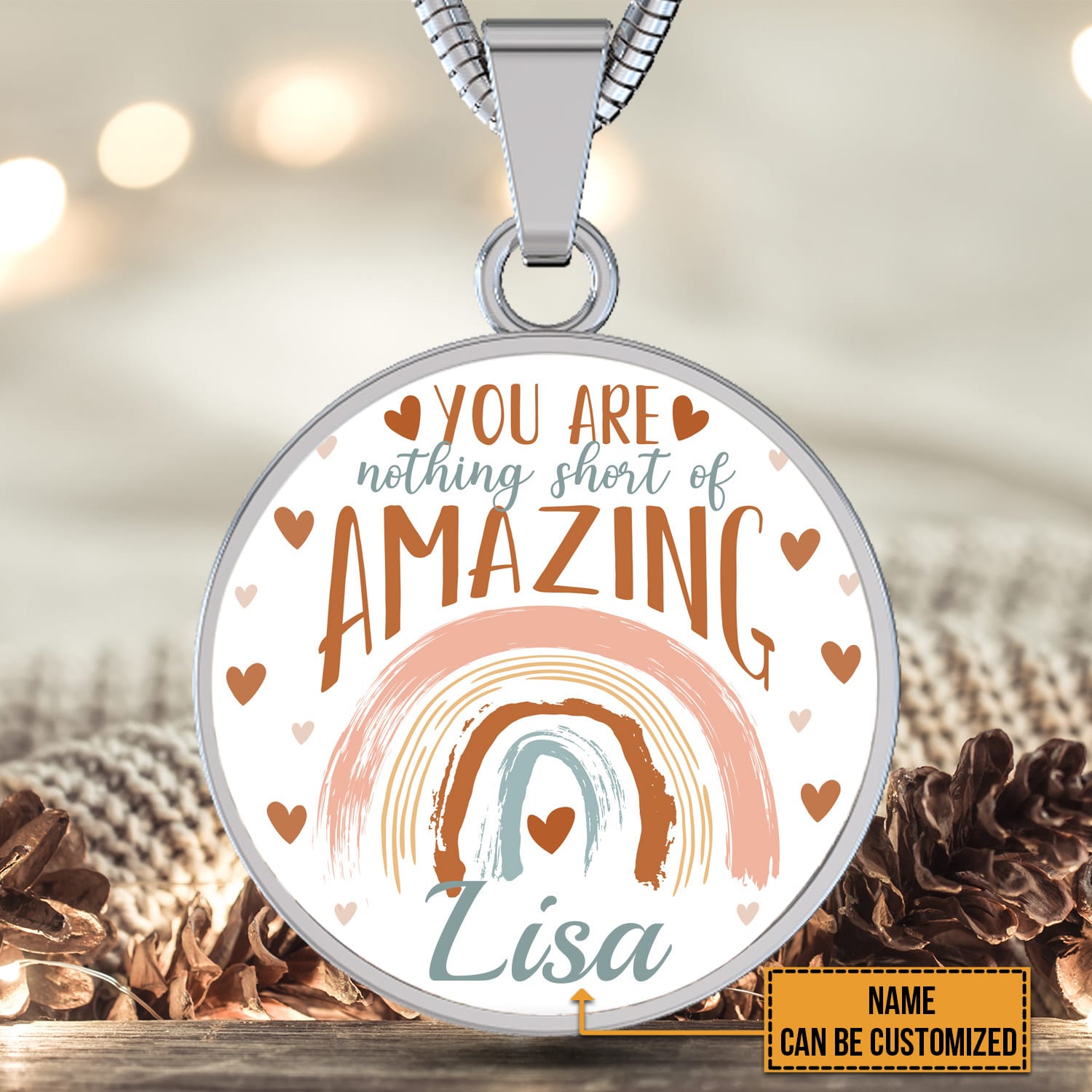 Let’s Shop Personalized Name You Are Nothing Short of Amazing Rainbow Circle Pendant Necklace – Bangle!