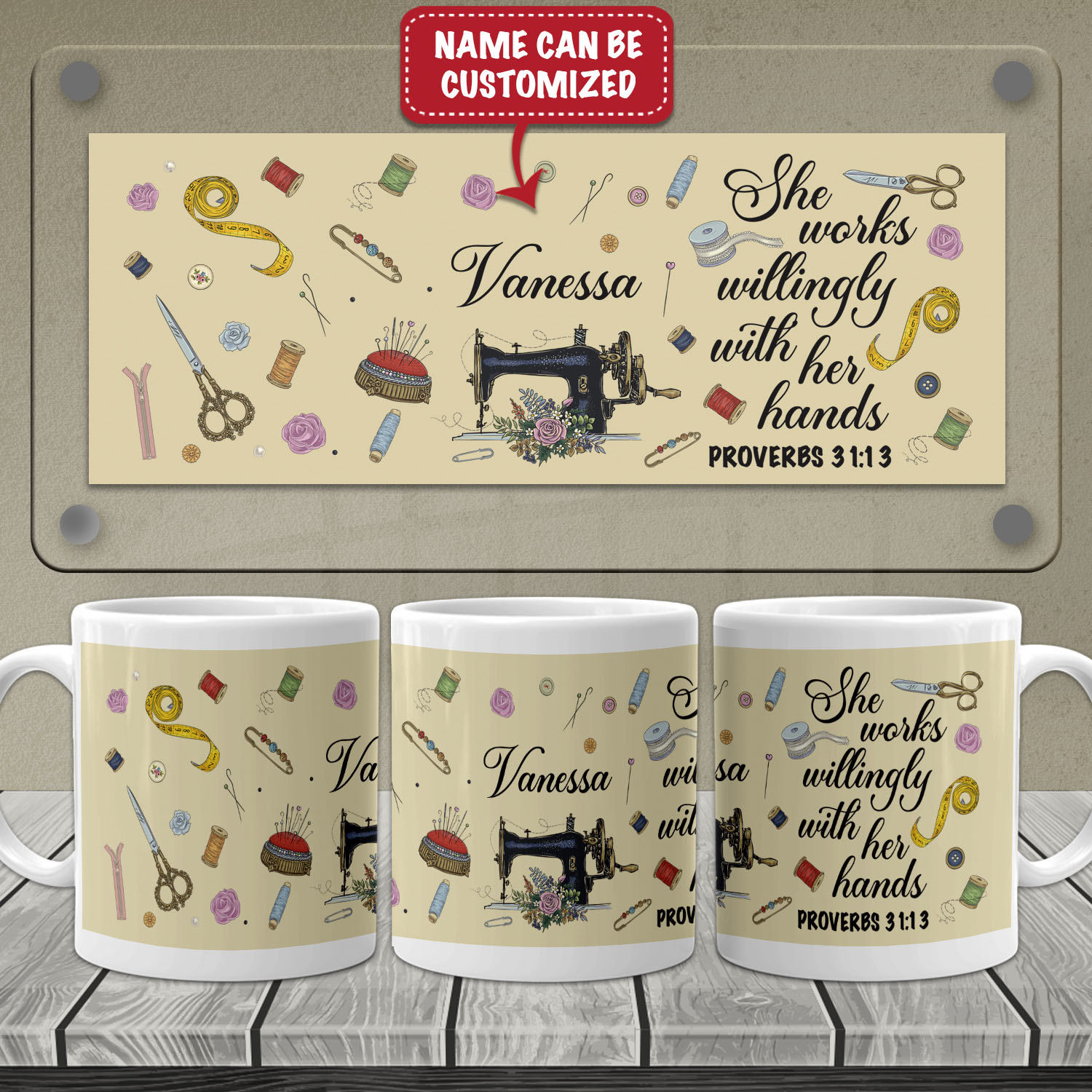 Let’s Shop Personalized Tailor She Works Willingly with Her Hands Ceramic Coffee Mug – Color Changing Mug!