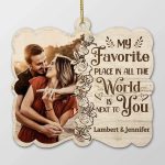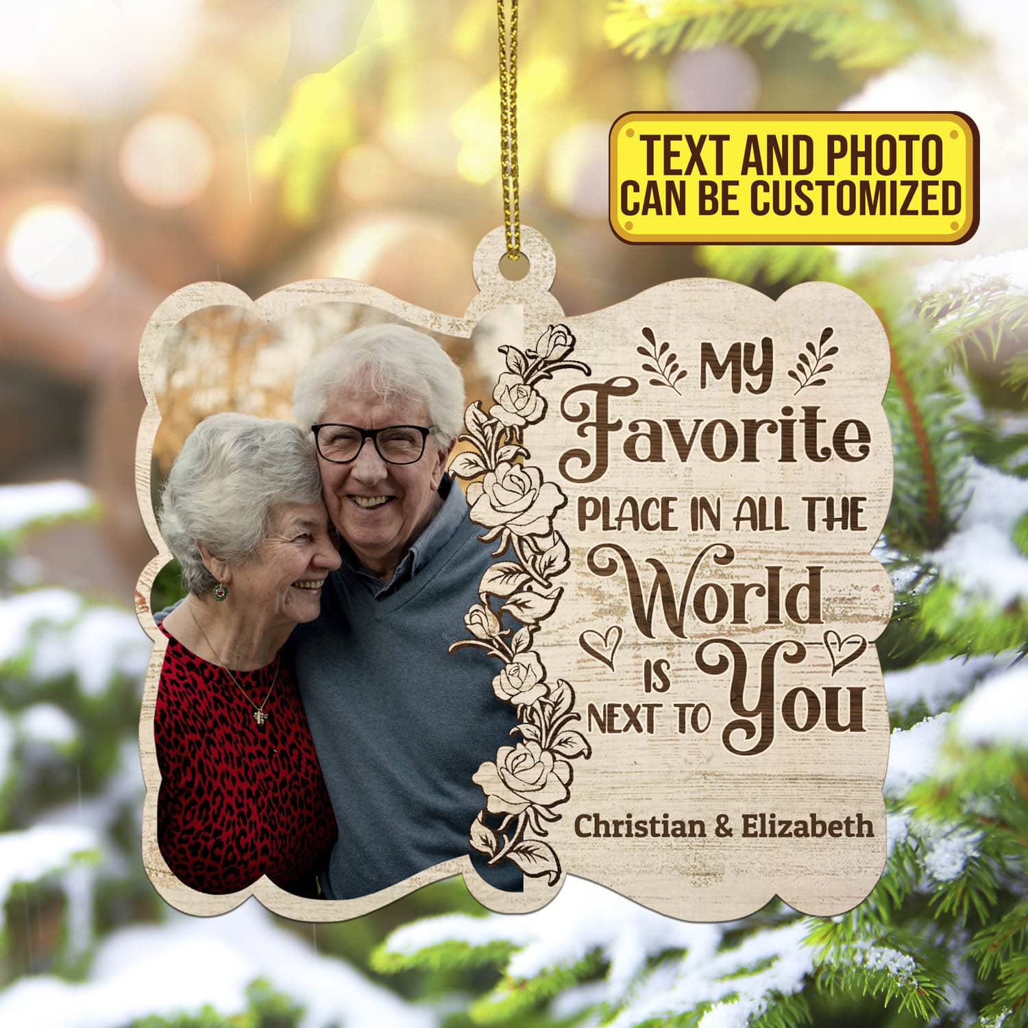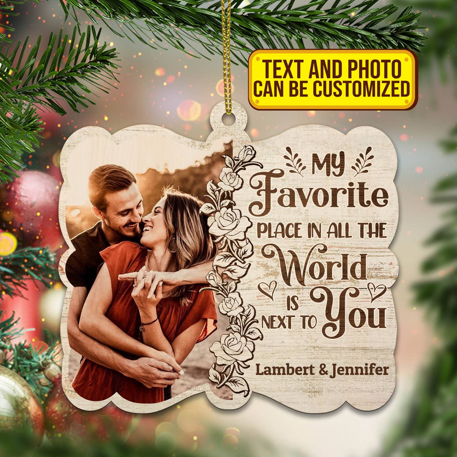 Let’s Shop Personalized Photo My Favorite Place In All The World Is Next To You Custom Shaped Wooden Christmas Ornament!