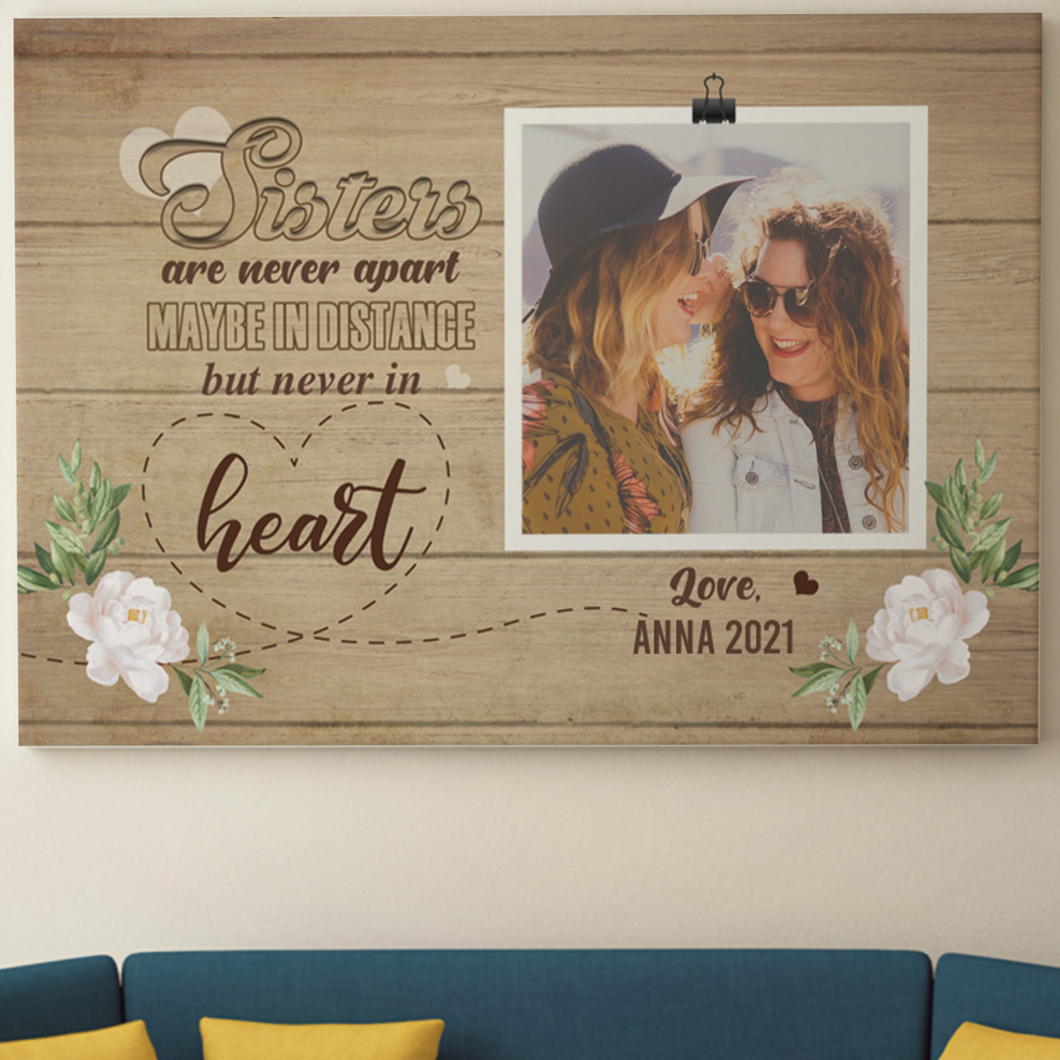 Let’s Shop Custom Photo Sisters Are Never Apart Maybe In Distance But Never In Heart Framed Canvas – Unframed Poster!