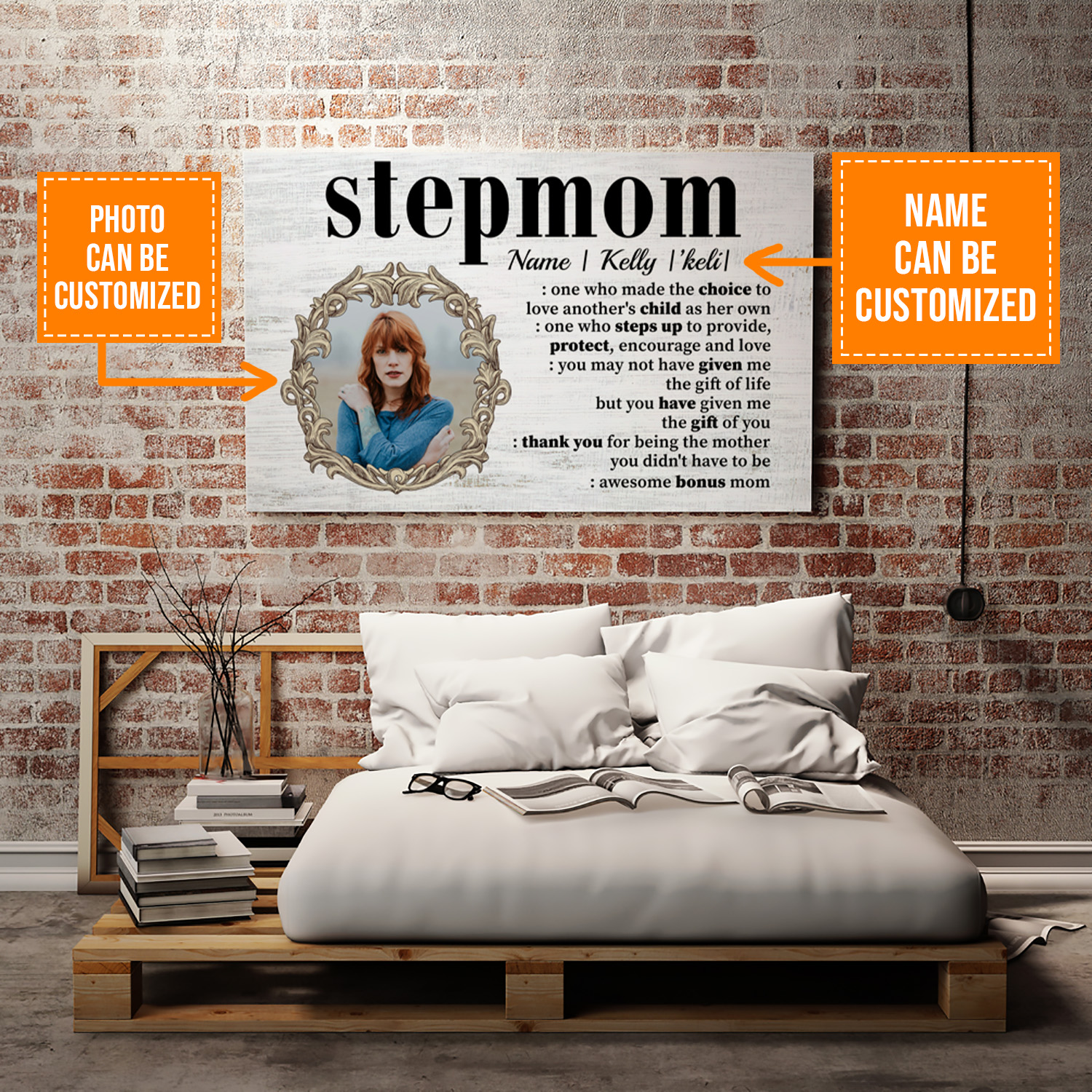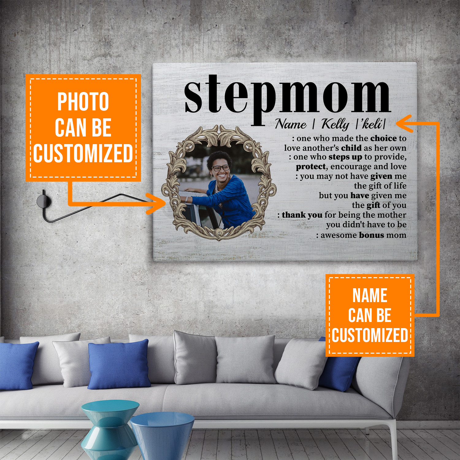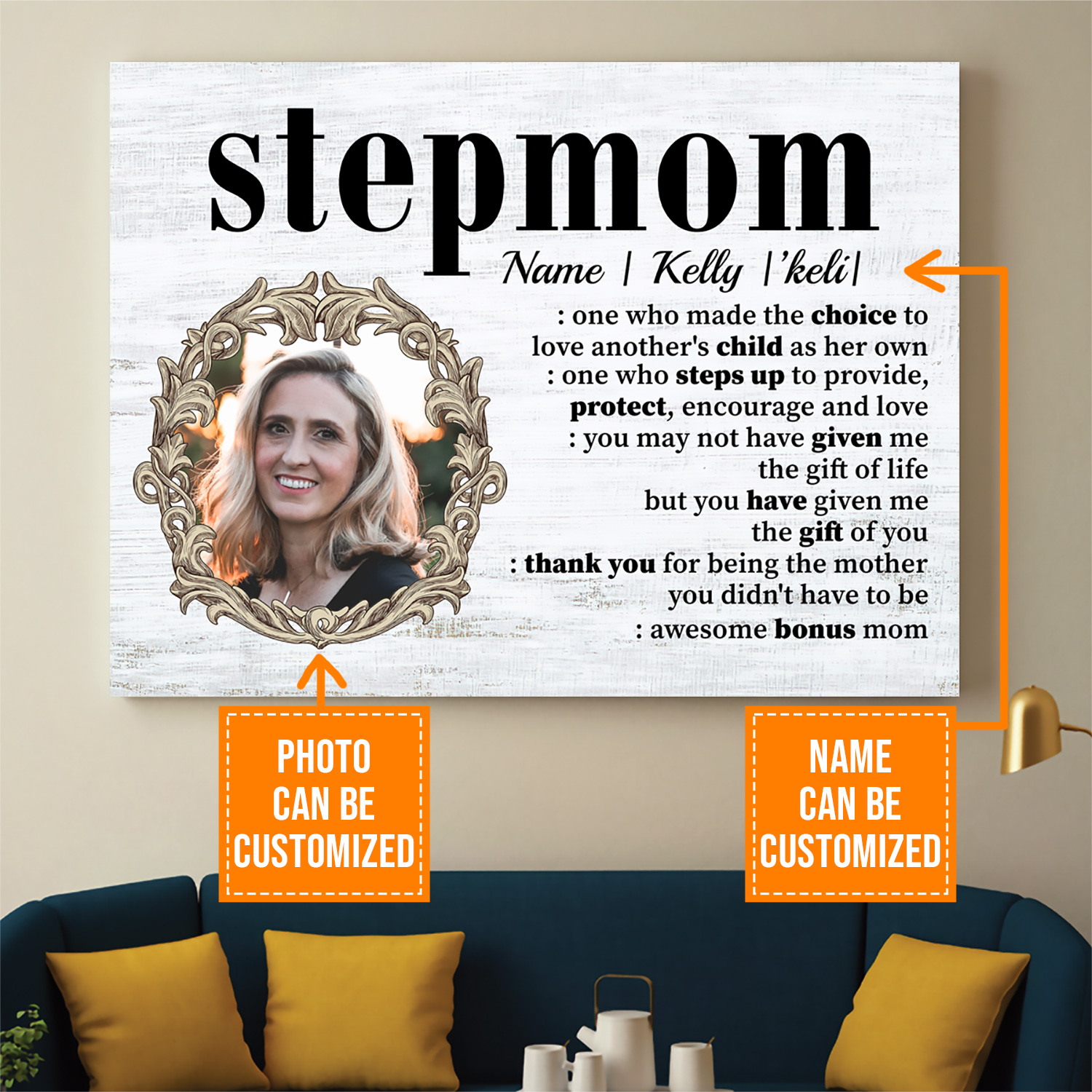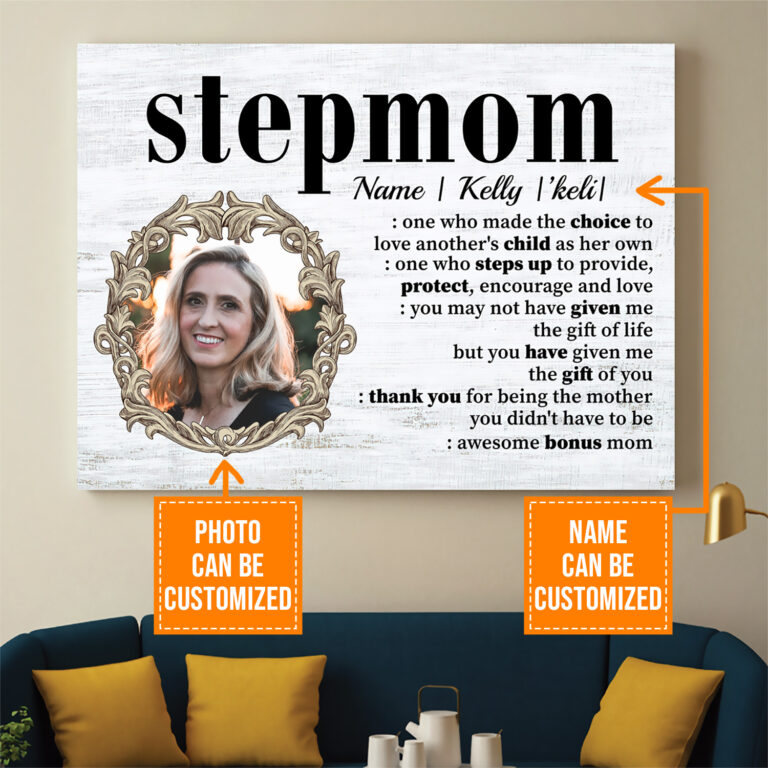 Let’s Shop Personalized Photo Stepmom Definition One Who Made the Choice To Love Framed Canvas – Unframed Poster!