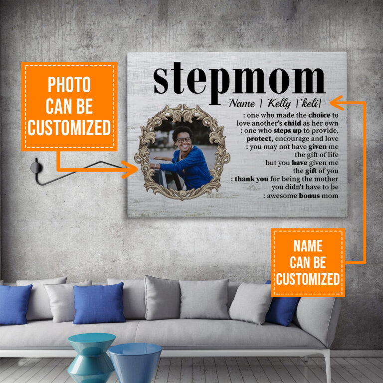 At CubeBik, besides canvases, we also offer tees, hoodies, sweaters, raglans, tanks, wall arts, posters, mugs, blankets, engraved jewelry, personalized necklaces, printed face masks, throw pillows, tote bags, hats, accessories and more on our website, so do not miss our other Stepmom Mothers Day Gifts, Stepmom Mothers Day, Mothers Day Stepmom, Stepmom Birthday Gifts, Stepmom Wedding Gift, Stepmom Picture Frame, Stepmom Poster related merchandise. Moreover, all the products are made-to-order and one of a kind custom designs you can’t get elsewhere in normal stores. Let’s discover CubeBik.com now and find your favorite personalized items. We can’t wait to surprise and build beautiful memories with you and your loved ones.