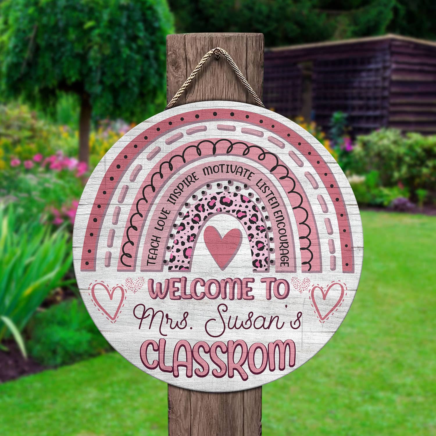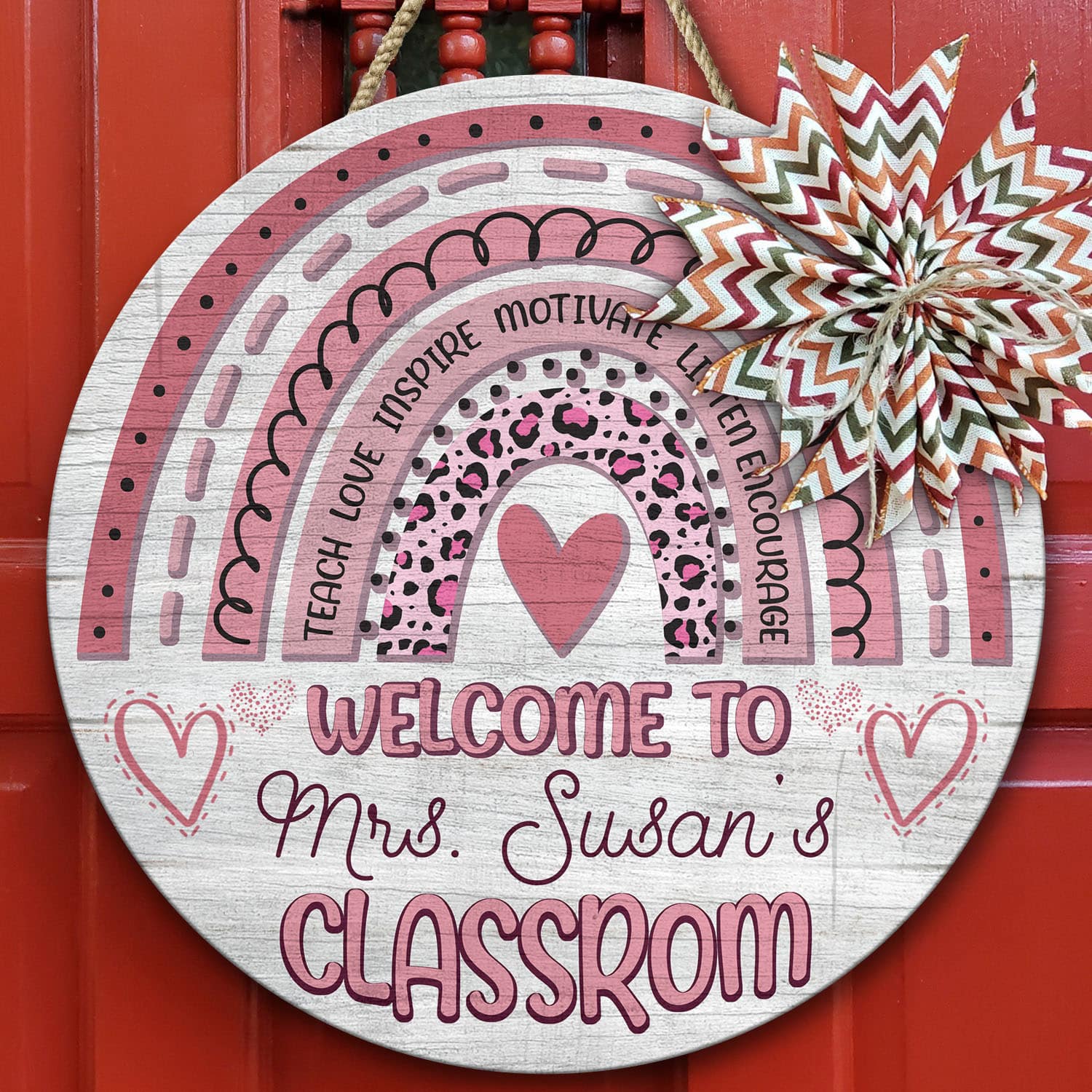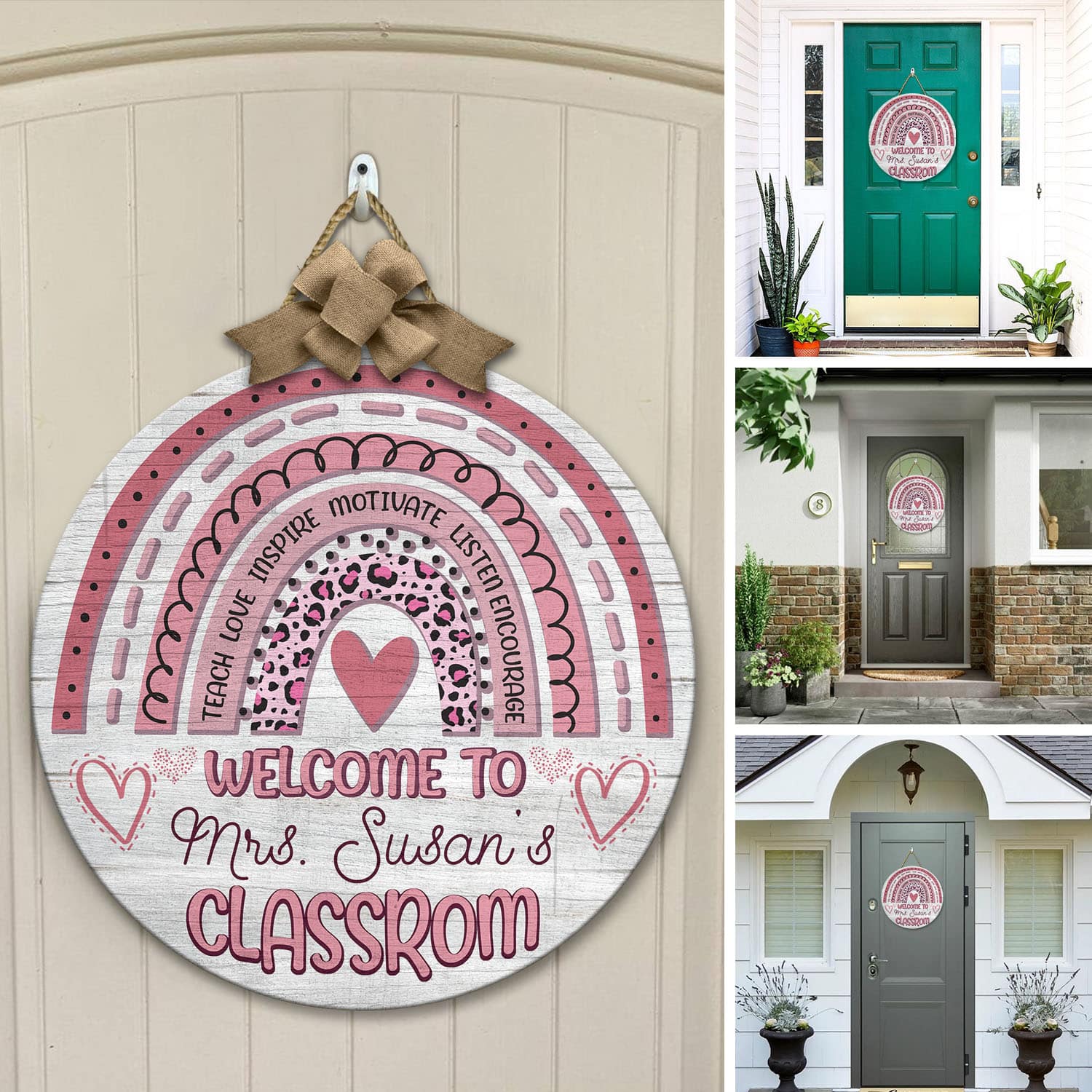 Let’s Shop Personalized Welcome To Teacher’s Classroom Wooden Front Door Sign – Custom Teacher Welcome Sign For Front Porch!