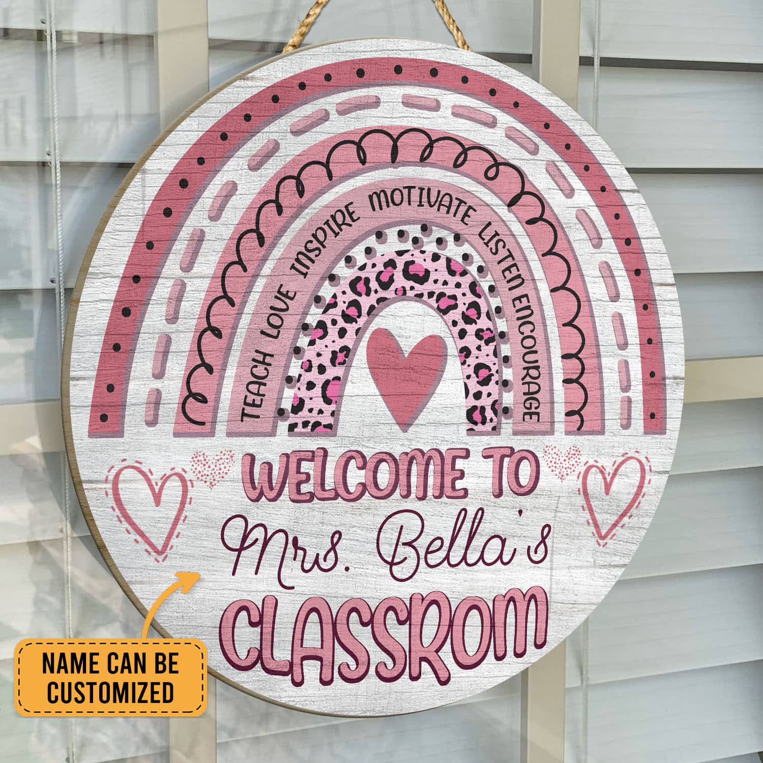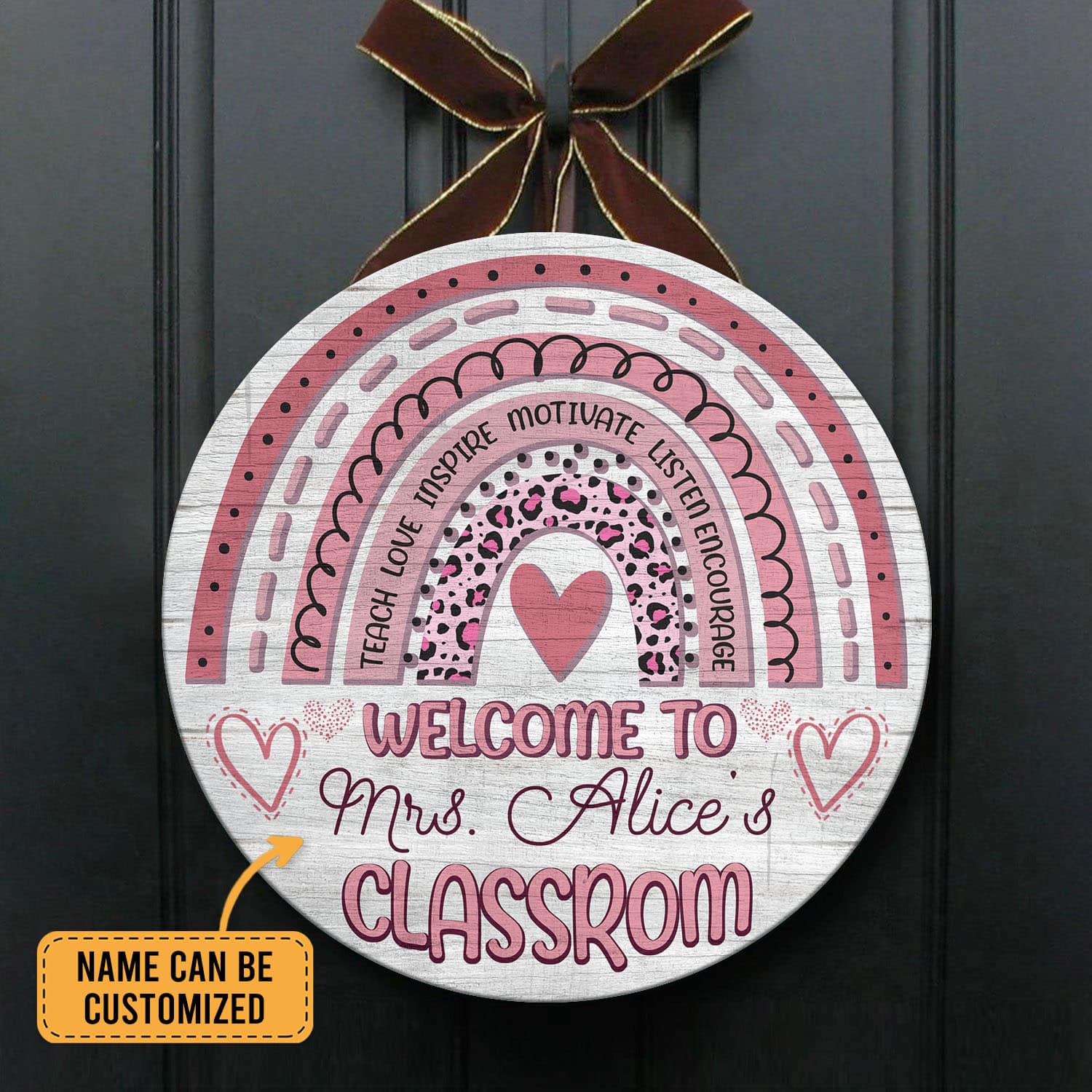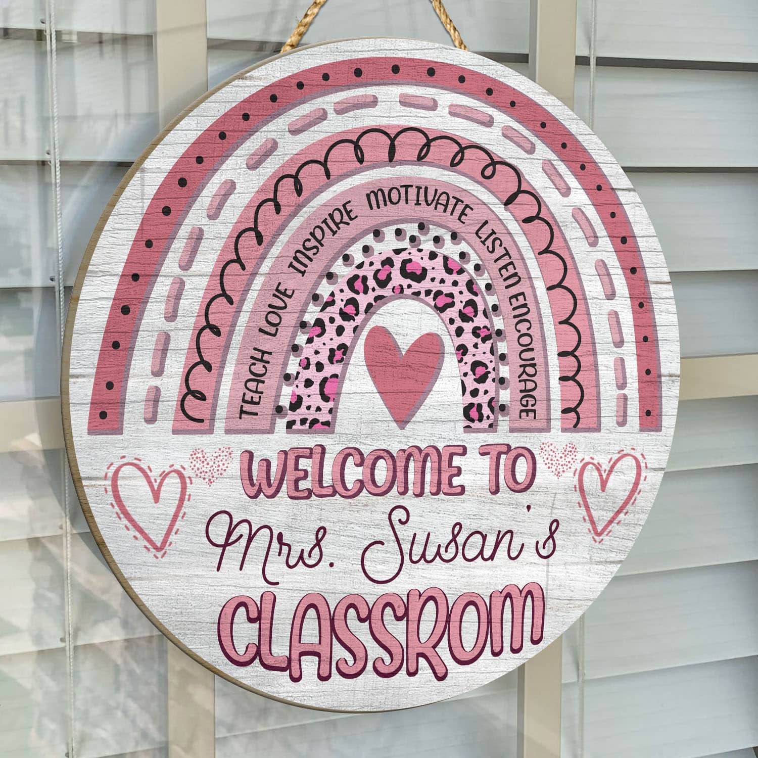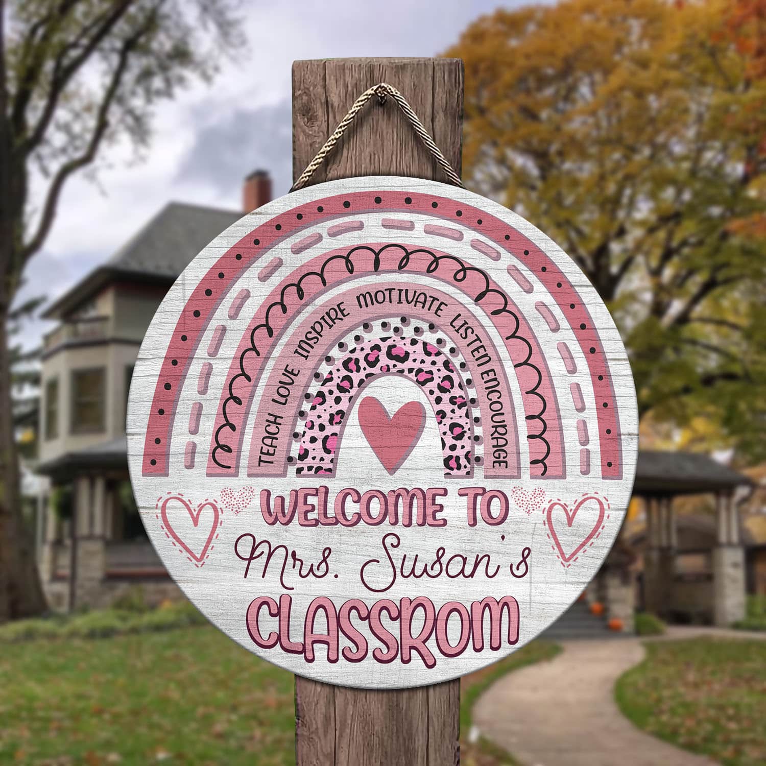 Let’s Shop Personalized Welcome To Teacher’s Classroom Wooden Front Door Sign – Custom Teacher Welcome Sign For Front Porch!