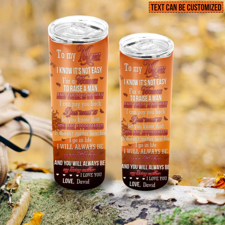 Let’s Shop Personalized To My Mom I Know It’s Not Easy For a Woman To Raise a Man Skinny Double Wall Vacuum Insulated Tumbler Cup!