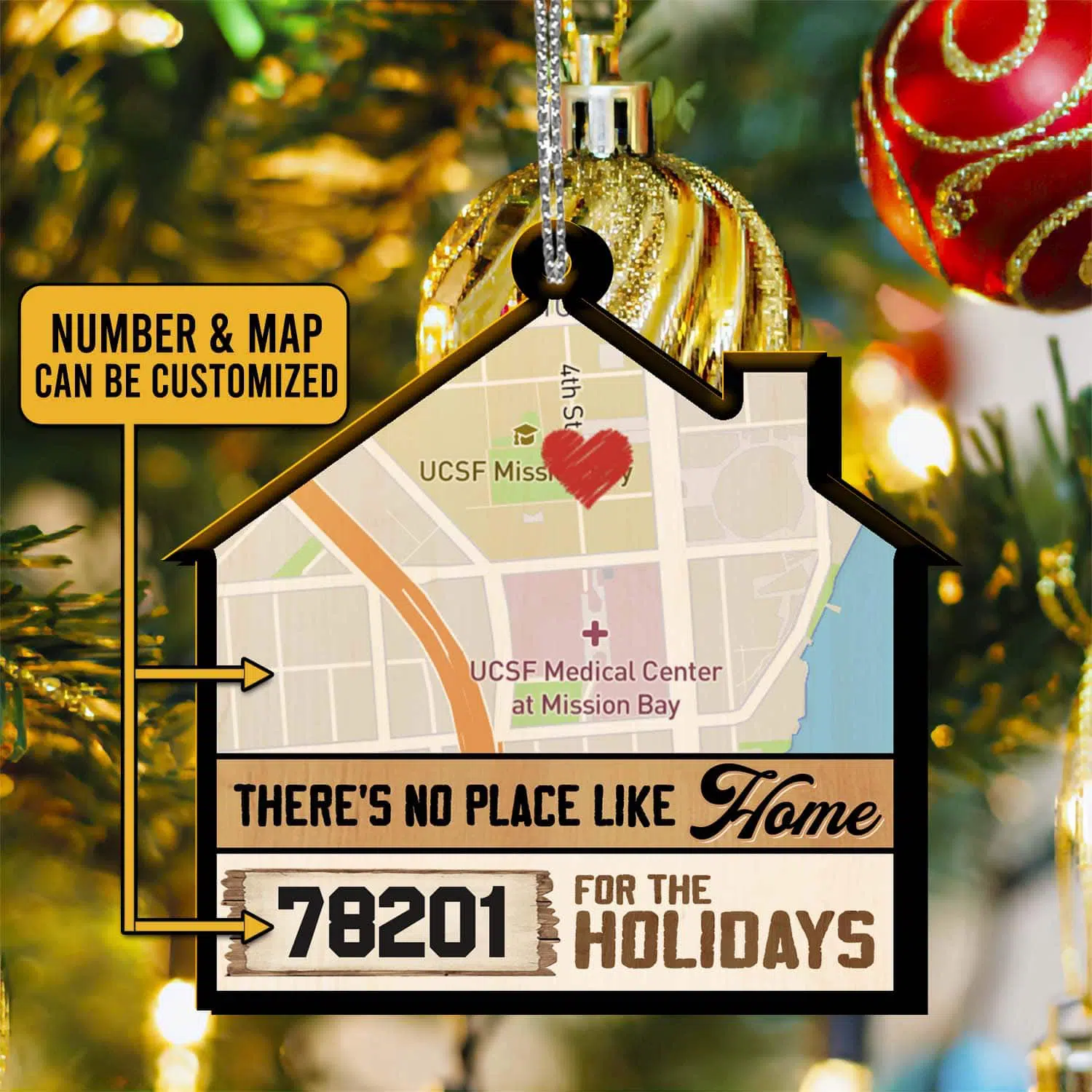 Let’s Shop Custom Code Maps Christmas Ornament No Place Like Home for The Holidays Decorative Custom Shaped Wooden Christmas Ornament!