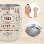 Let’s Shop Customized Age Birthday Celebration Aged To Perfection Vacuum Insulated Cup – Wine Tumbler with Lid!