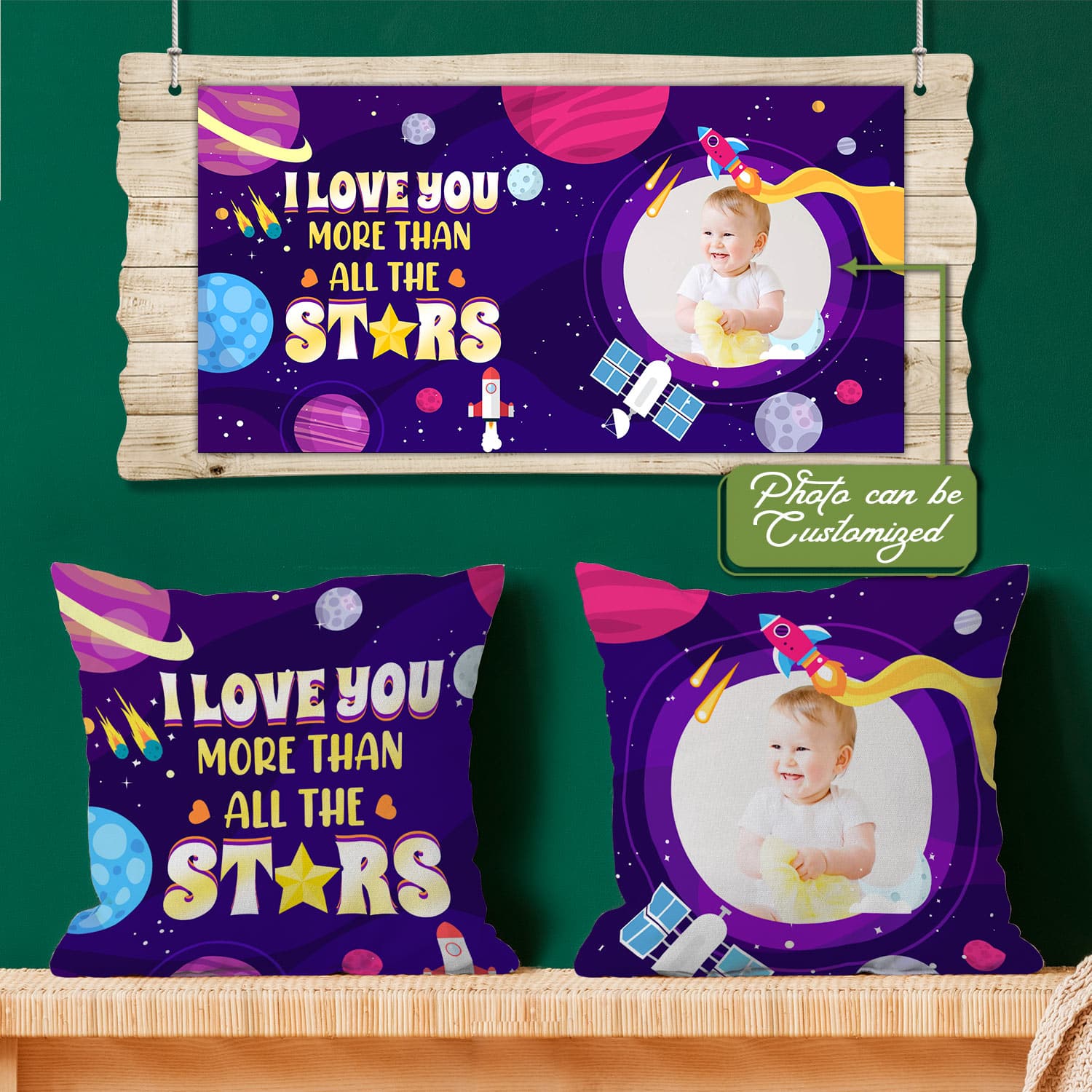 Let’s Shop Personalized Baby Photo I Love You More Than All The Stars Throw Pillow – Decorative Pillow – Indoor Cushion!