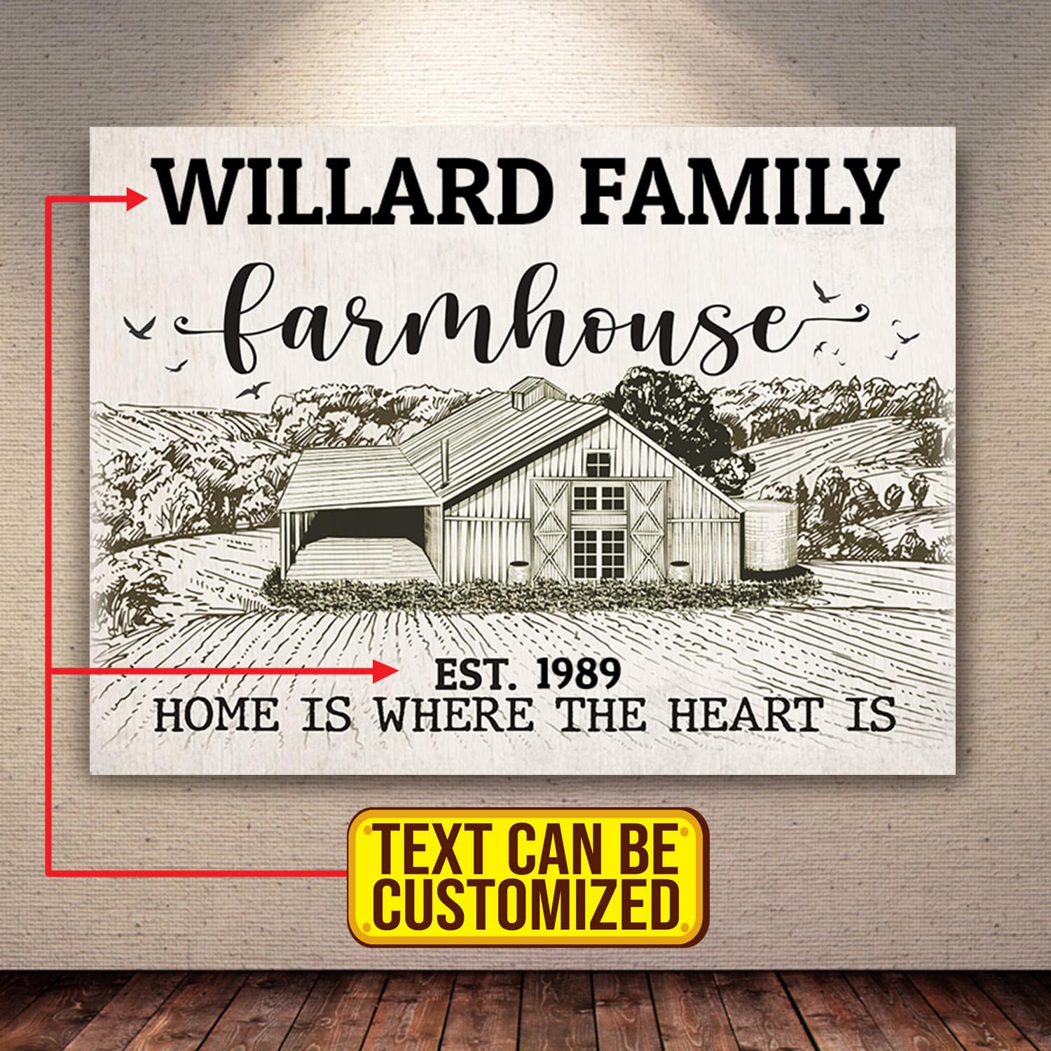 Let’s Shop Personalized Family Name Farmhouse Canvas – Customized Farmhouse Wrapped Framed Canvas Prints – Unframed Poster!