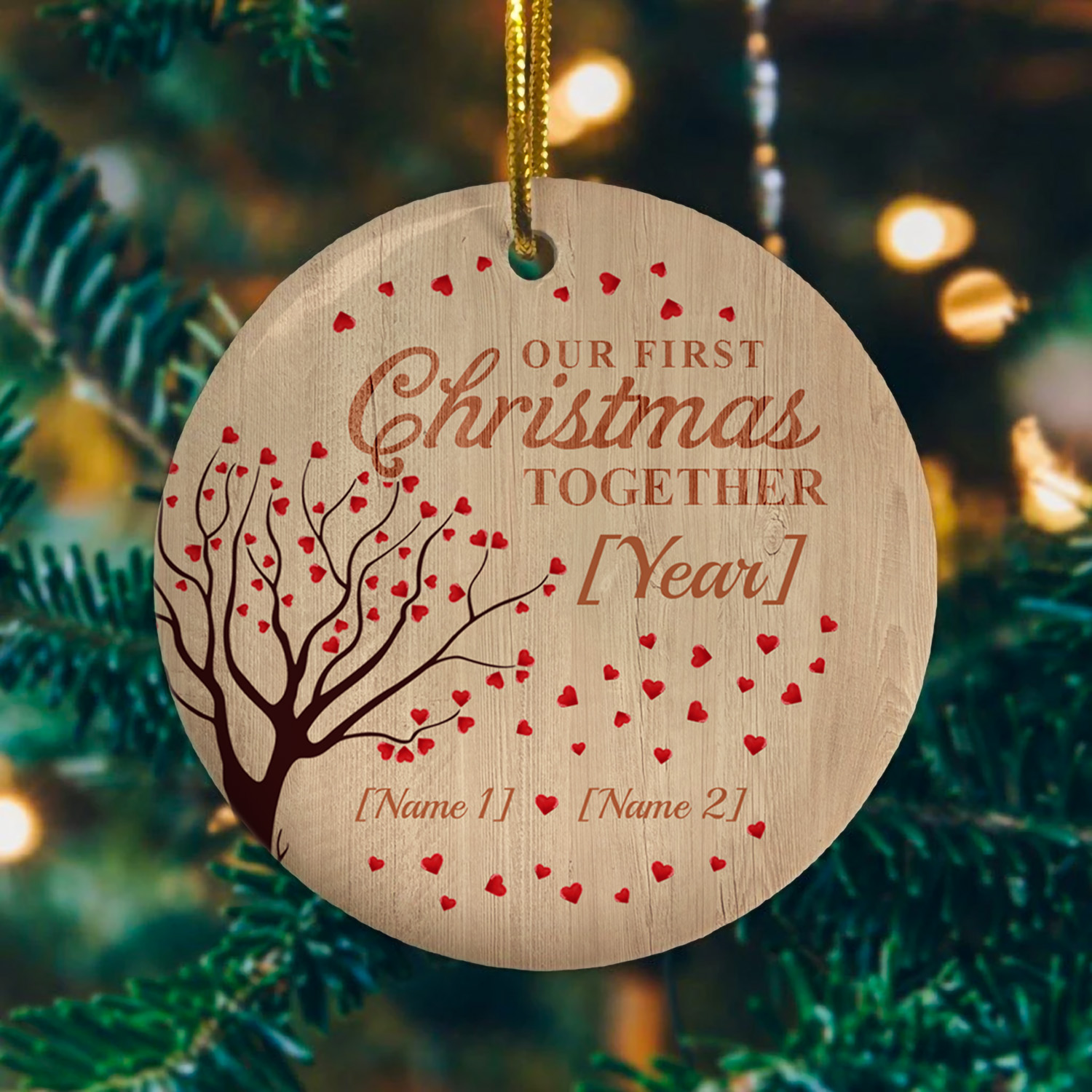 Let’s Shop Personalized Our First Christmas Together Decorative Christmas Ornament – Holiday Flat Circle Ornament!