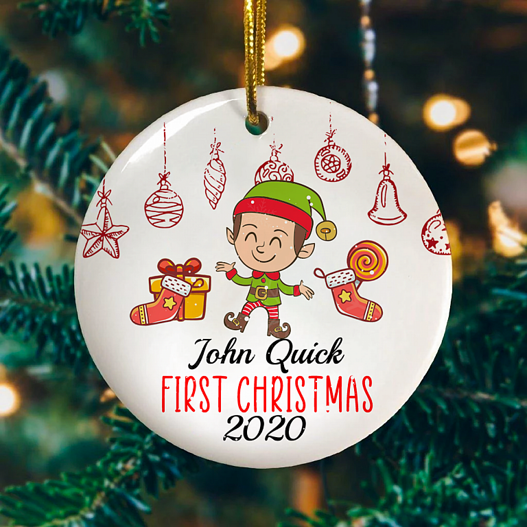 Let’s Shop Personalized Baby Boy ELF First Christmas 2020 Decorative Christmas Ornament – Holiday Flat Circle Ornament!