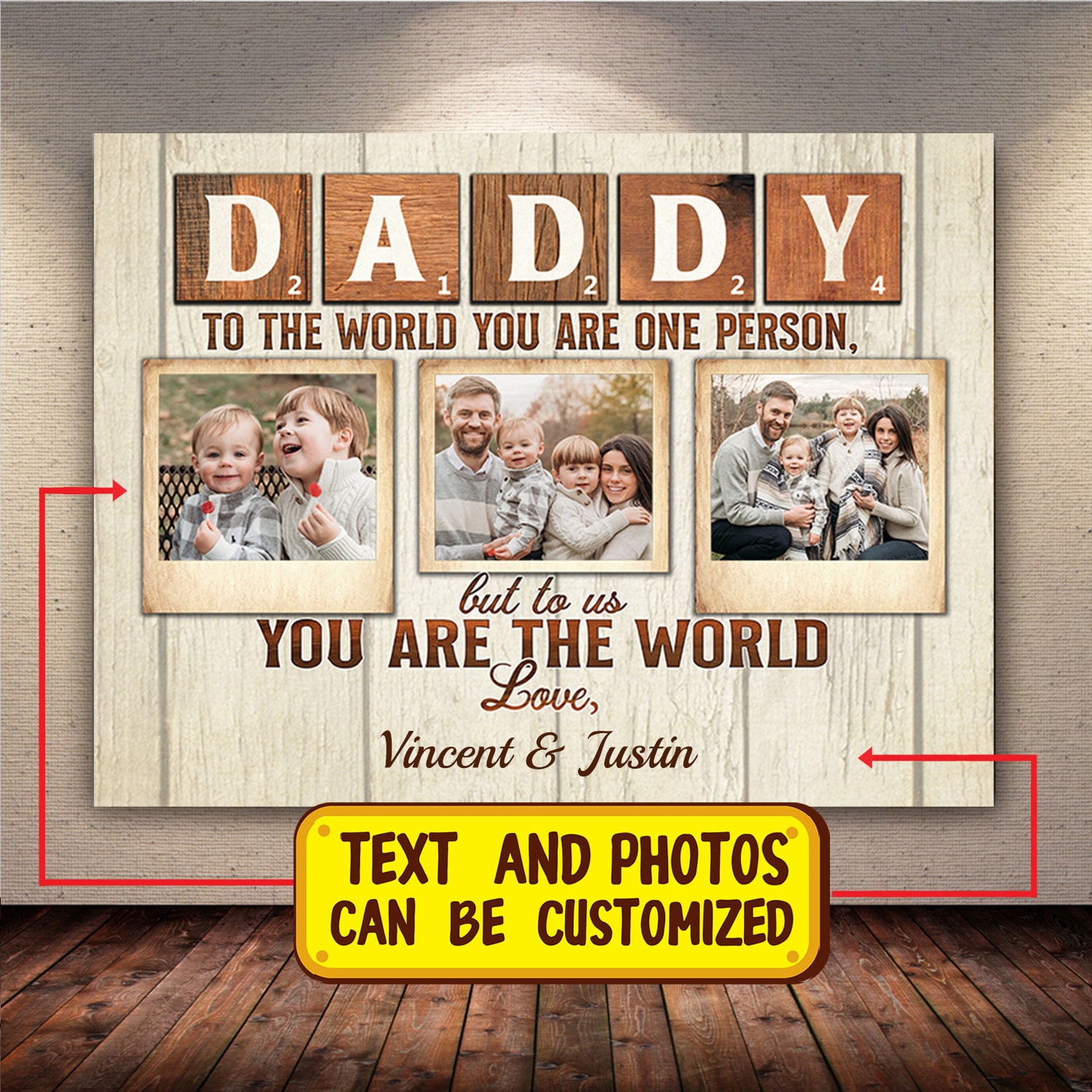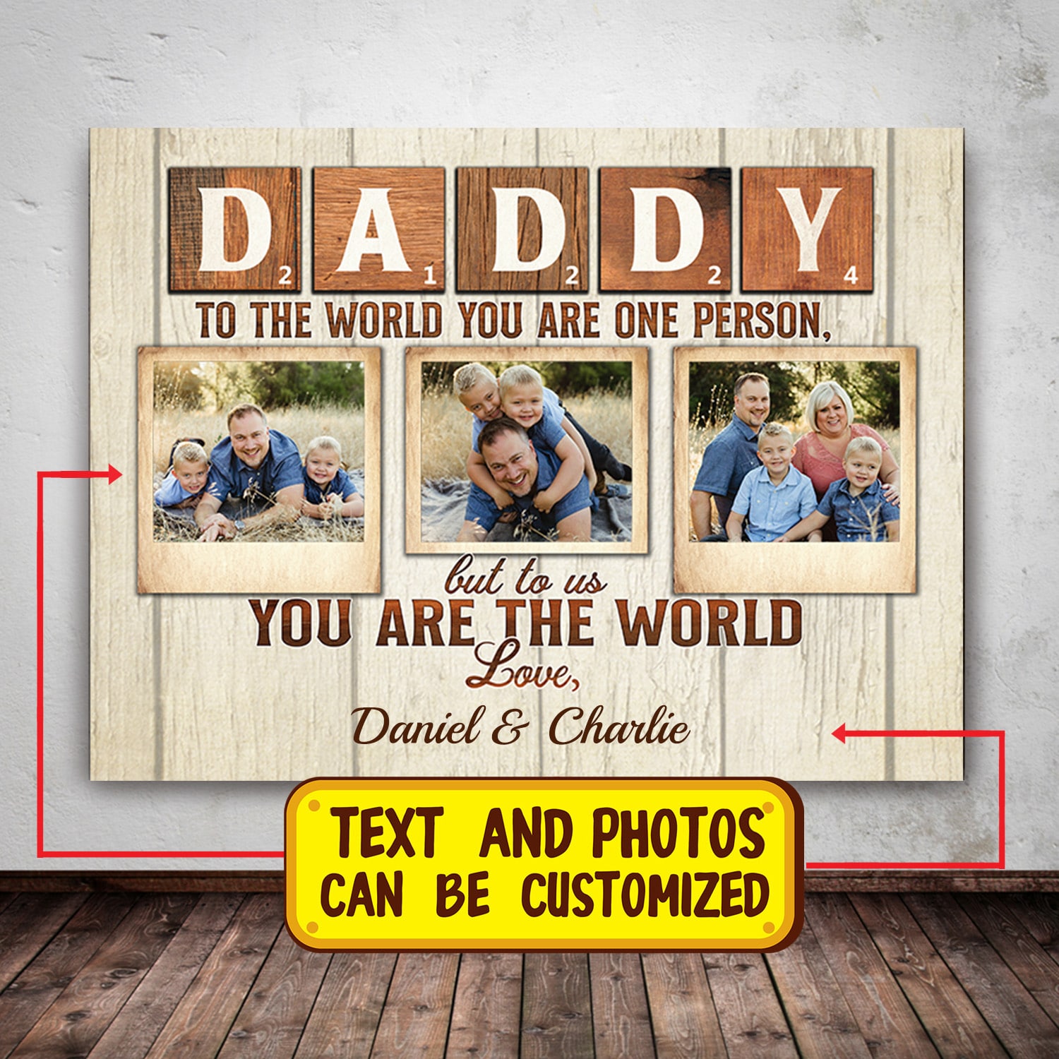 Let’s Shop Customized Photo Daddy To The World You Are One Person But To Us You Are The World Framed Canvas – Unframed Poster!