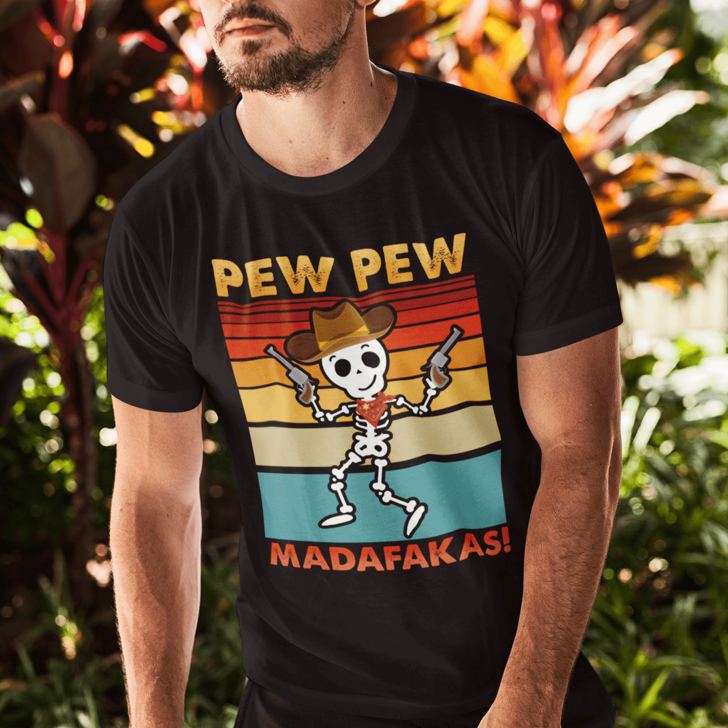 Skeleton Pew Pew Madafakas T-Shirt, Black, Unisex T-Shirt