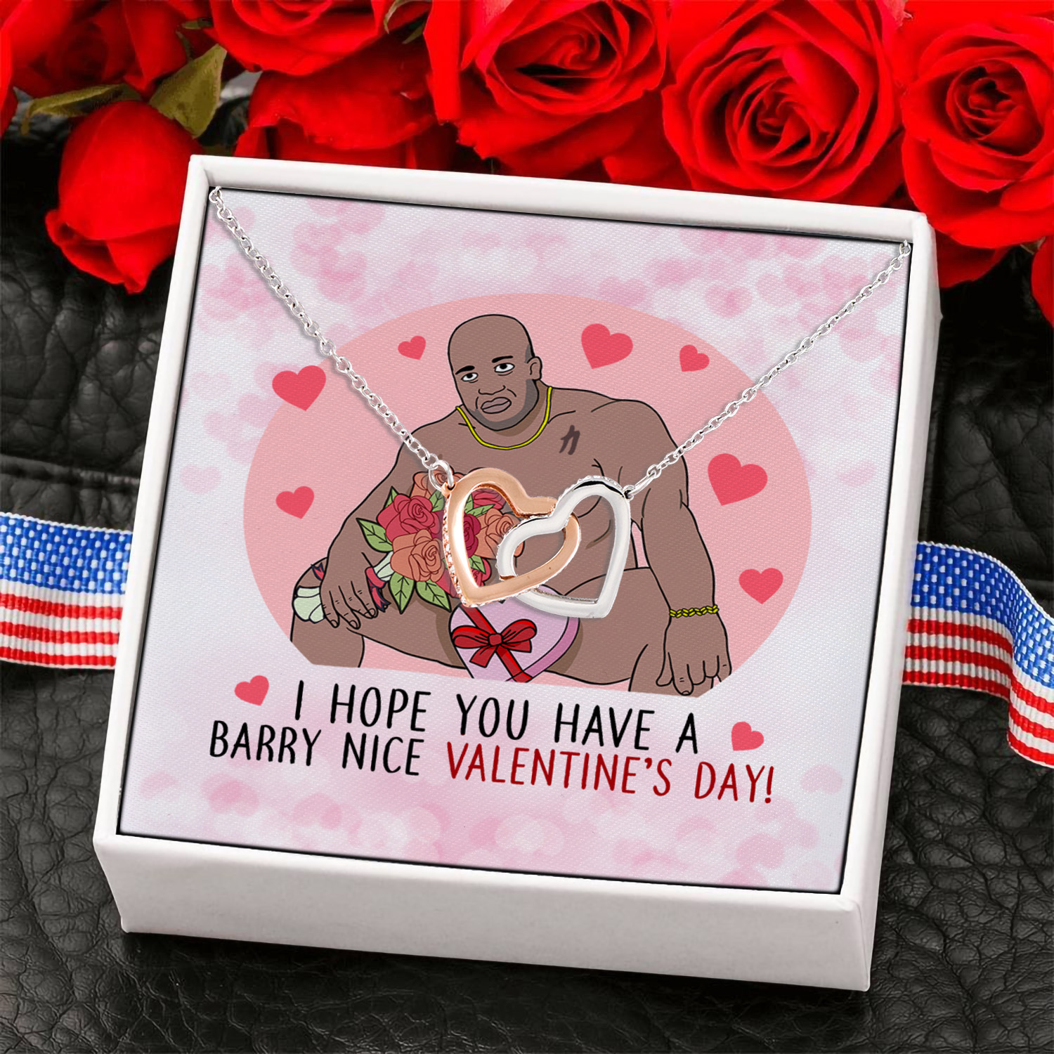 Let’s Shop Barry Valentine Wood Sitting Nice Valentine’s Day Funny Gift Ideas Interlocking Heart Pendant Necklace!