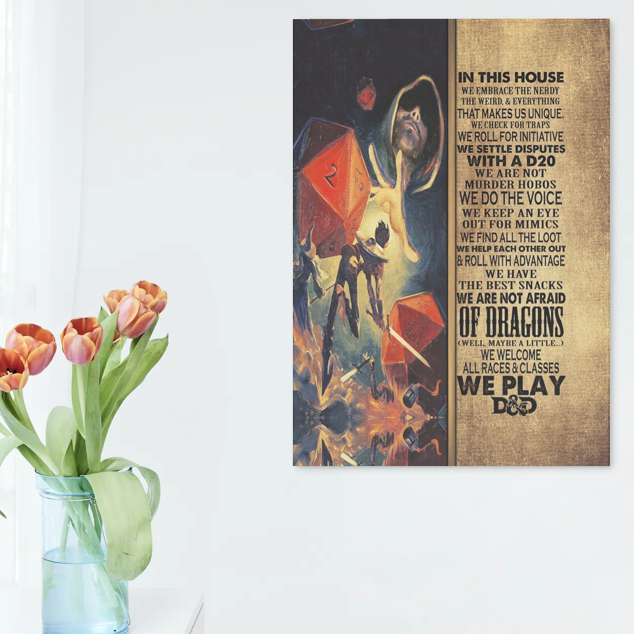 Are you spending too much time to find creative merchandise for you or suitable & special gifts for your mommy, your daddy, your son, your daughter, your children, your friends or someone you love? The struggle is over because we have various In This House We Play D&D Canvas Poster, D And D Boardgame Wall Art, D And D Game Wall Art, Dungeons & Dragons Game Canvas Poster, D And D Home Decor which will make perfect presents for your beloveds. In order to make your present stand out, we have created lots of unique and awesome customized photo gifts & personalized designs.